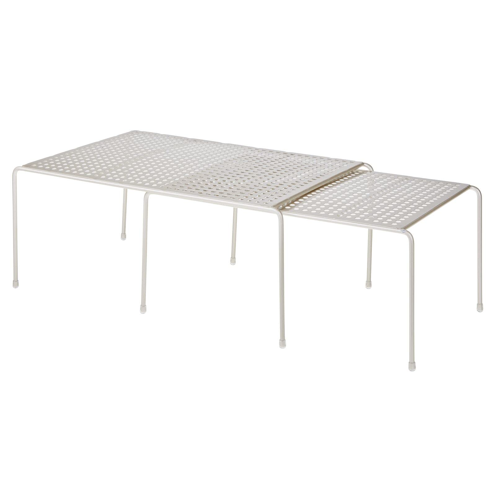 Endlich mehr Stauraum mit diesem ausziehbaren Geschirrregal von mDesign Sie kennen wahrscheinlich das Dilemma: Küchenschränke bieten nicht genug Stauraum für Teller, Tassen und Teller. Wir haben die Lösung mit dem mDesign Küchenregal für Arbeitsplatten oder Schränke, wo Sie einen neuen Stauraum für Ihre Lebensmittel schaffen. Das Geschirrregal ist auch auf 64,8 cm erweiterbar und kann an den verfügbaren Platz in Ihrer Küche angepasst werden. Das Zubehör besteht aus zwei Ebenen, so dass Sie beide Teile stapeln können. Dieses Ordnungssystem ist vielseitig einsetzbar und kann auch als Geschirrkorb verwendet werden. Die Produkteigenschaften im Detail für mehr Stauraum in der Teleskopküche und StapelregalMaterial: Metall und KunststoffFarbe: mattes SilberGrösse: 35,6 cm x 22,9 cm x 16,4 cmModellnummer: 02335MDKEU