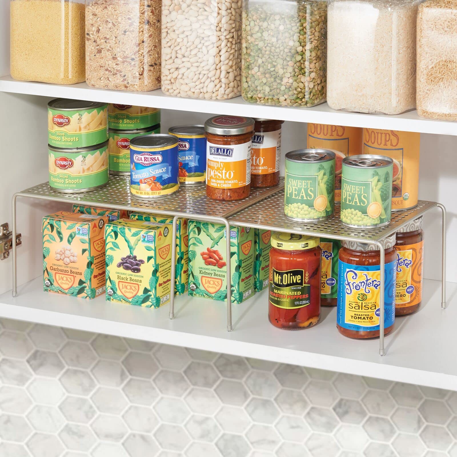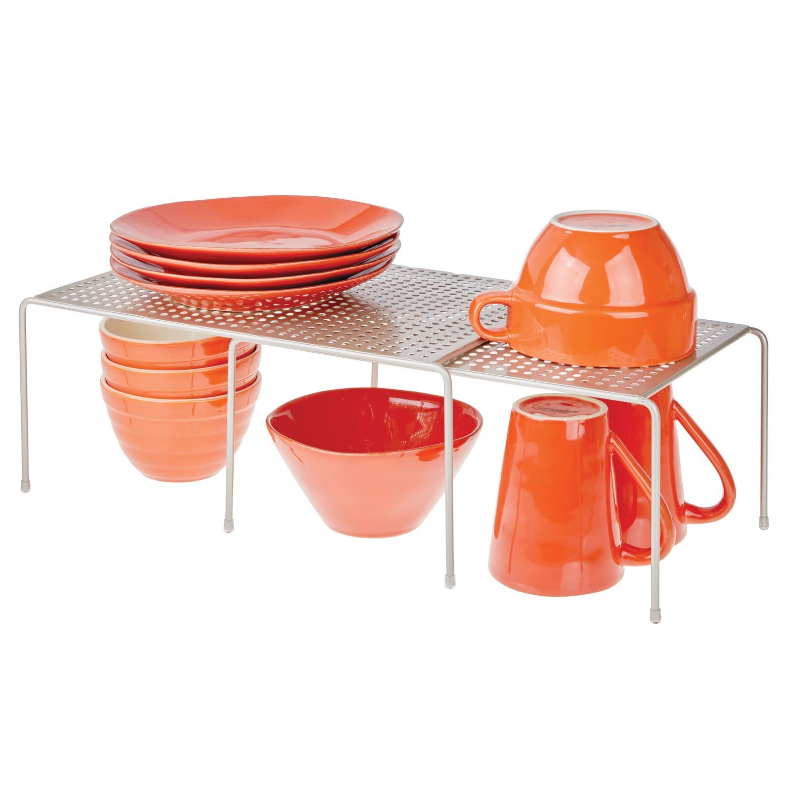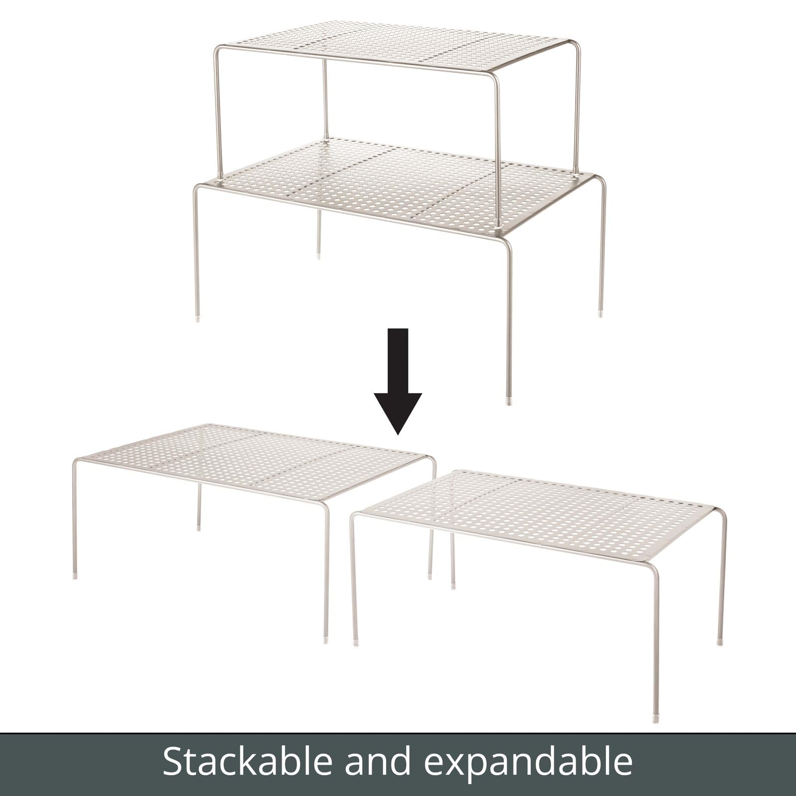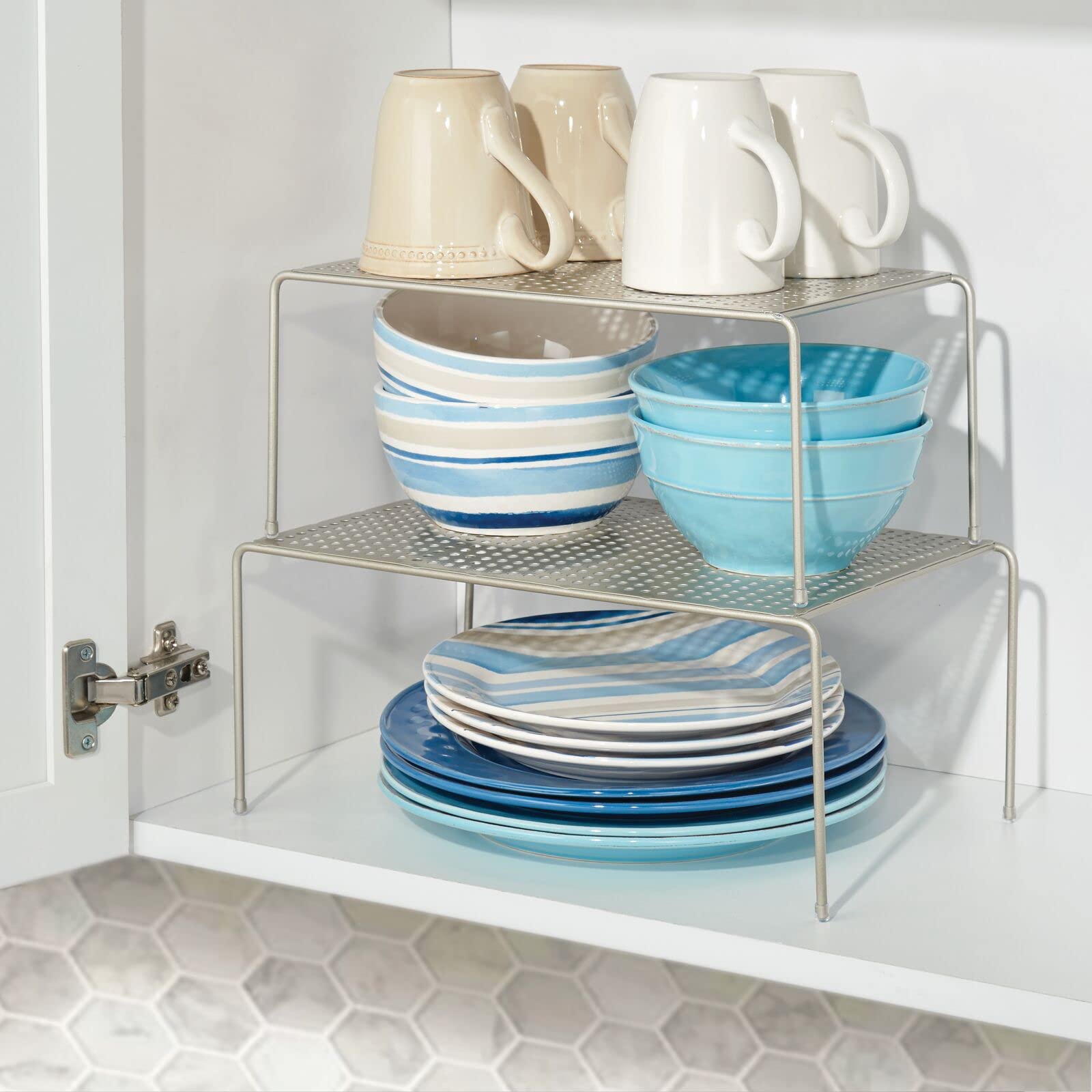 mDesign Regaleinsatz für Küchenschrank – verstellbare Geschirrablage aus Metall für mehr Abstellfläche – stapelbarer Schrankeinsatz zum Ausziehen – mattsilberfarben