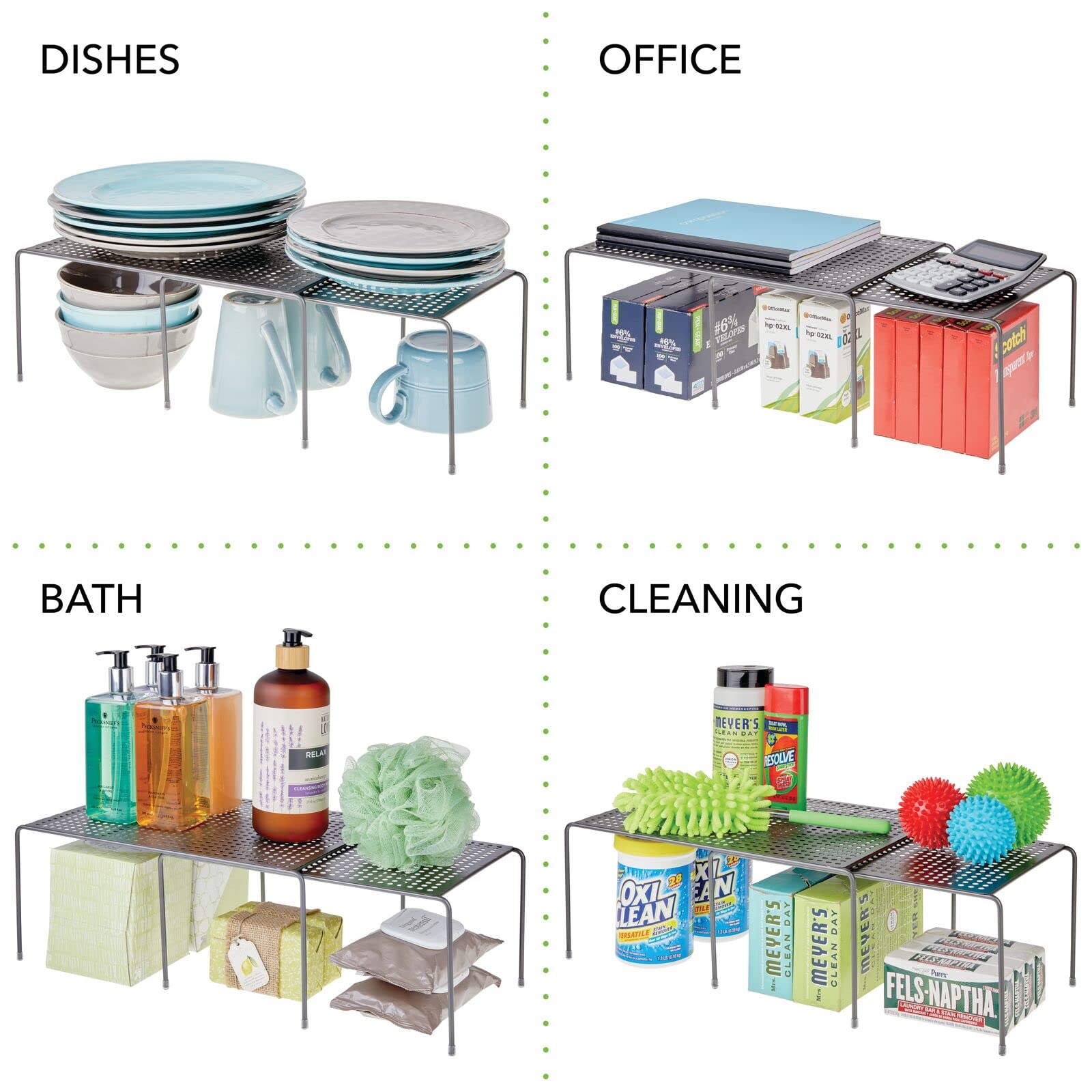 Endlich mehr Stauraum mit diesem ausziehbaren Regal von mDesign Wahrscheinlich kennen Sie das Dilemma: Küchenschränke bieten nicht genug Stauraum für Teller, Tassen und Schüsseln. Wir haben die Lösung mit dem mDesign Küchenregal für Arbeitsplatten oder Schränke, wo Sie einen neuen Stauraum für Ihre Speisen schaffen. Das Abtropfgestell ist auch auf 64,8 cm ausziehbar und kann an den verfügbaren Platz in Ihrer Küche angepasst werden. Produktmerkmale im Detail für mehr Stauraum in der Küche. Ausziehbares Teleskopregal Material: Metall. Farbe: grau Grösse: 35,6 x 22,9 x 16,4 cm. Modellnummer:01698MDKEU