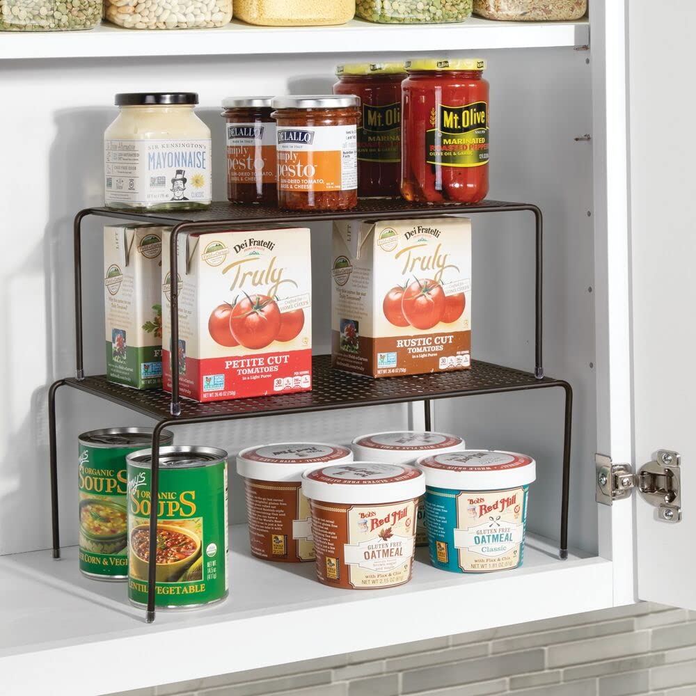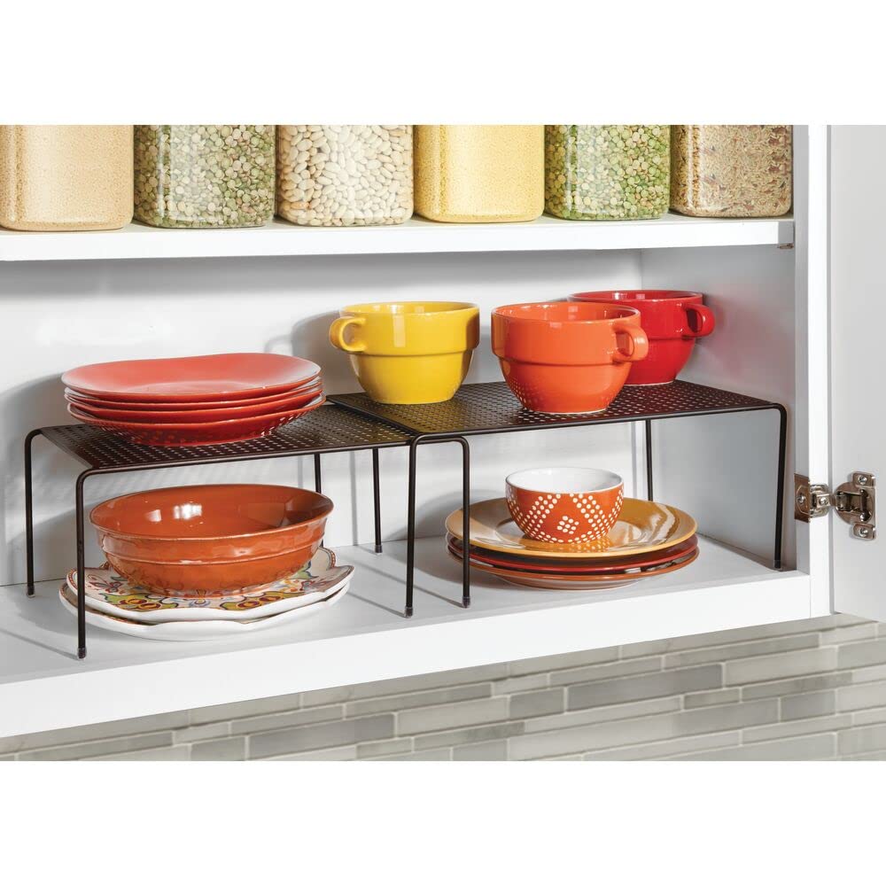 mDesign Regaleinsatz für Küchenschrank – praktische Geschirrablage aus Metall für mehr Abstellfläche – Schrankeinsatz zum Ausziehen – bronzefarben