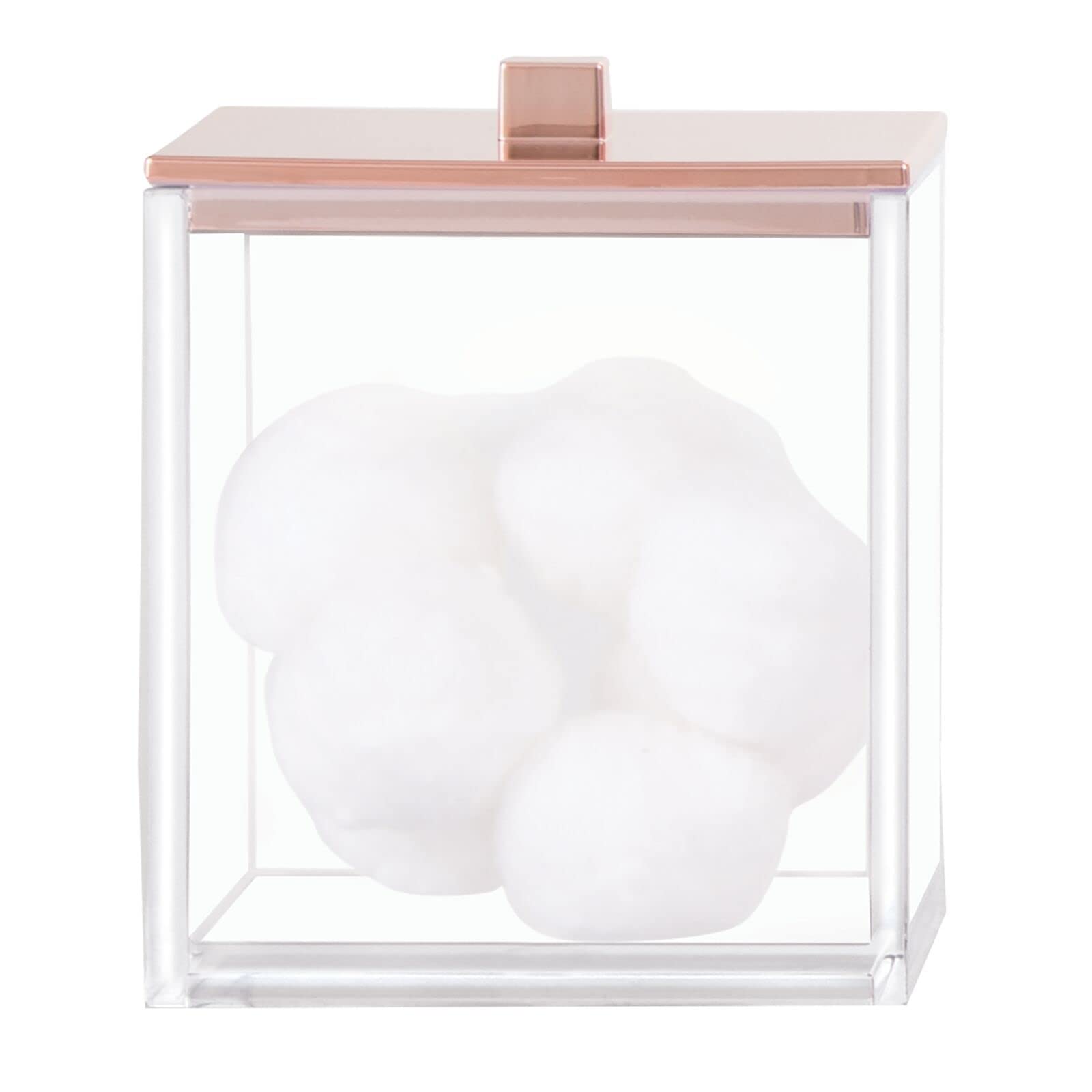mDesign 2er-Set Wattepad Spender und Wattestäbchen Behälter – modernes Aufbewahrungsglas mit praktischem Deckel – Bad Accessoire aus Kunststoff für Kosmetik- und Pflegeprodukte – durchsichtig/roségold