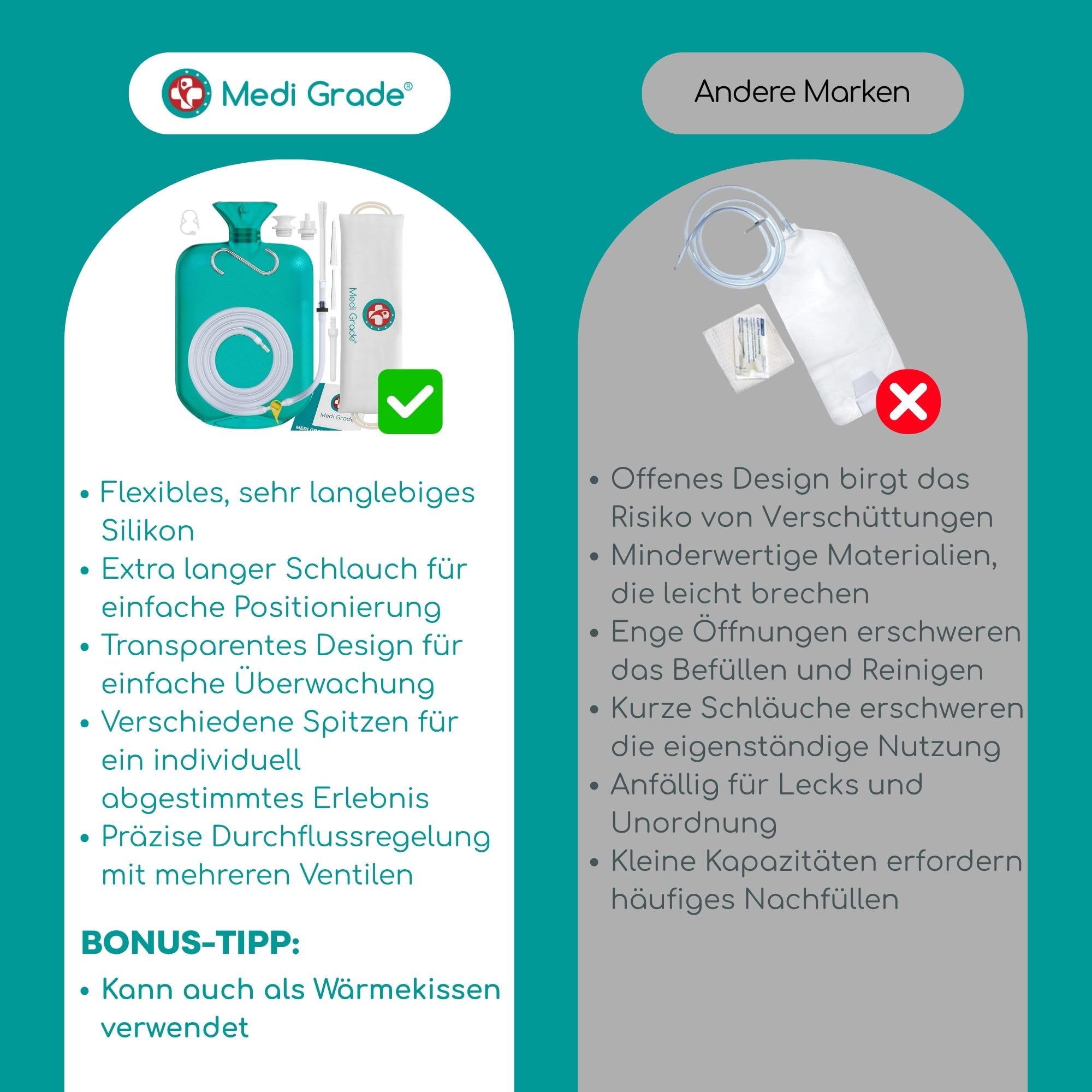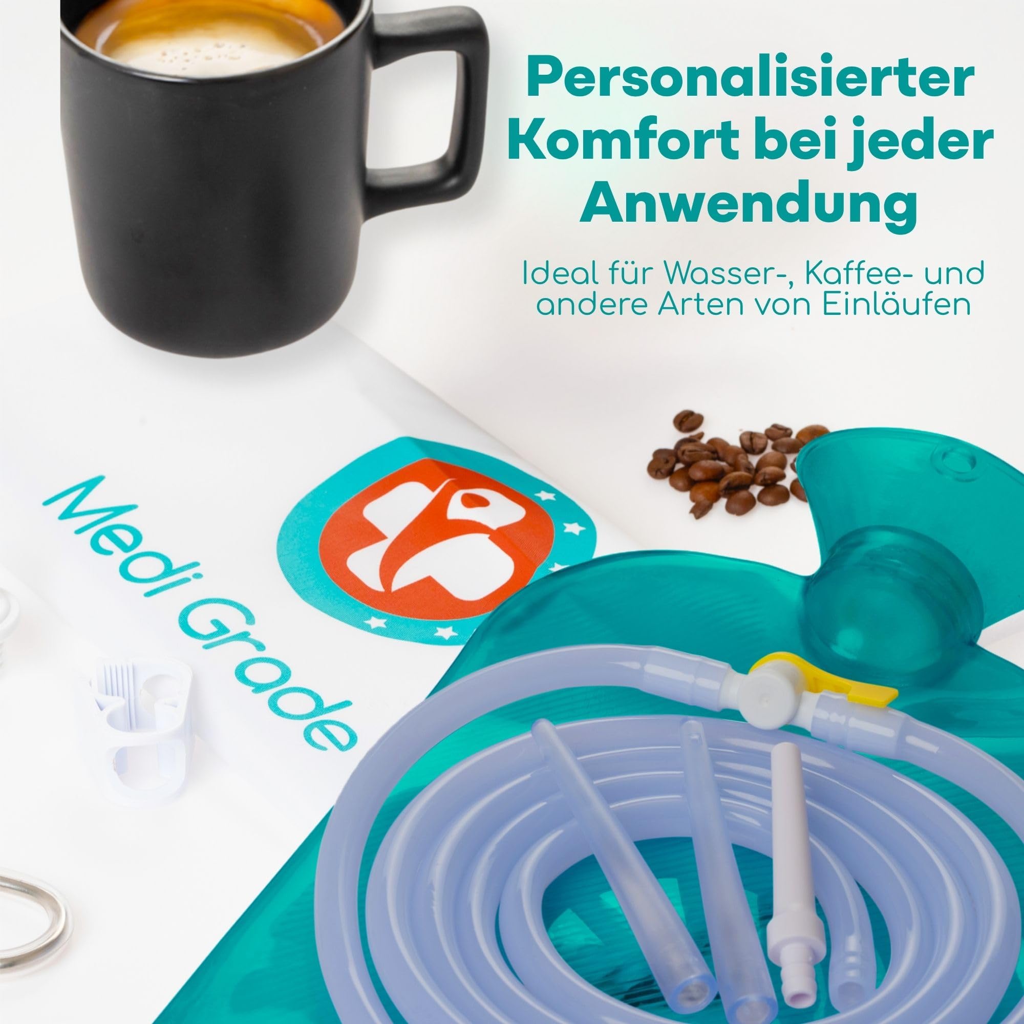 Das Home Colon Reinigungsset von Medi Grade ist fuer die persoenliche Intimhygiene und die Reinigung mit Wasser konzipiert. Es eignet sich fuer Erwachsene und ist fuer die Anwendung zu Hause vorgesehen. Das Set ermoeglicht Wassereinlaeufe im hygienischen Sinn und ist auf eine manuelle, kontrollierte Nutzung ausgelegt.