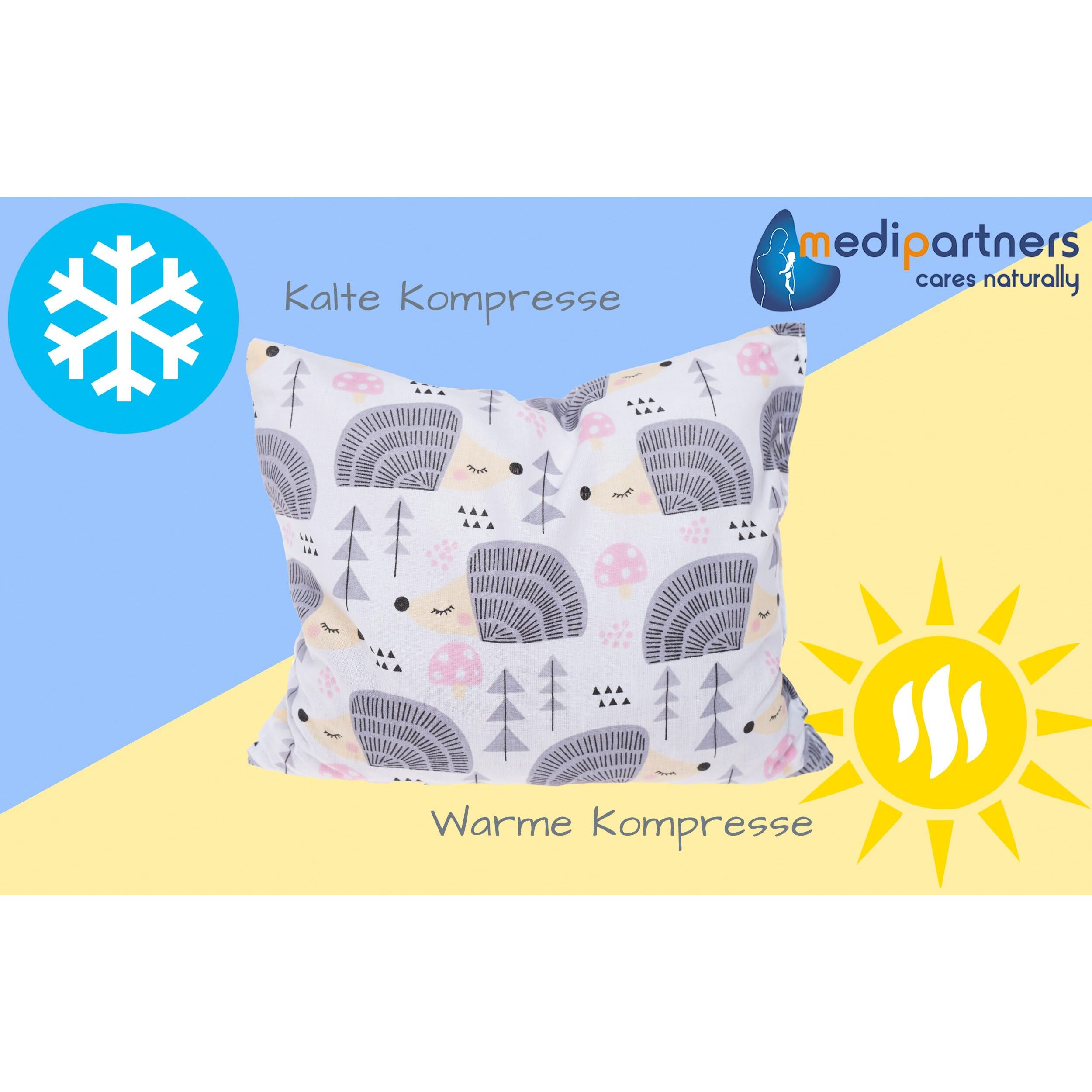 Medi Partners Kirschkernkissen Mikrowelle 20x25cm Körnerkissen gross Wärmekissen 500g Rechteck 100% Baumwolle Öko Natur Massagetherapie - Kirschkernkissen nacken schulter Kältetherapie (Igel)
