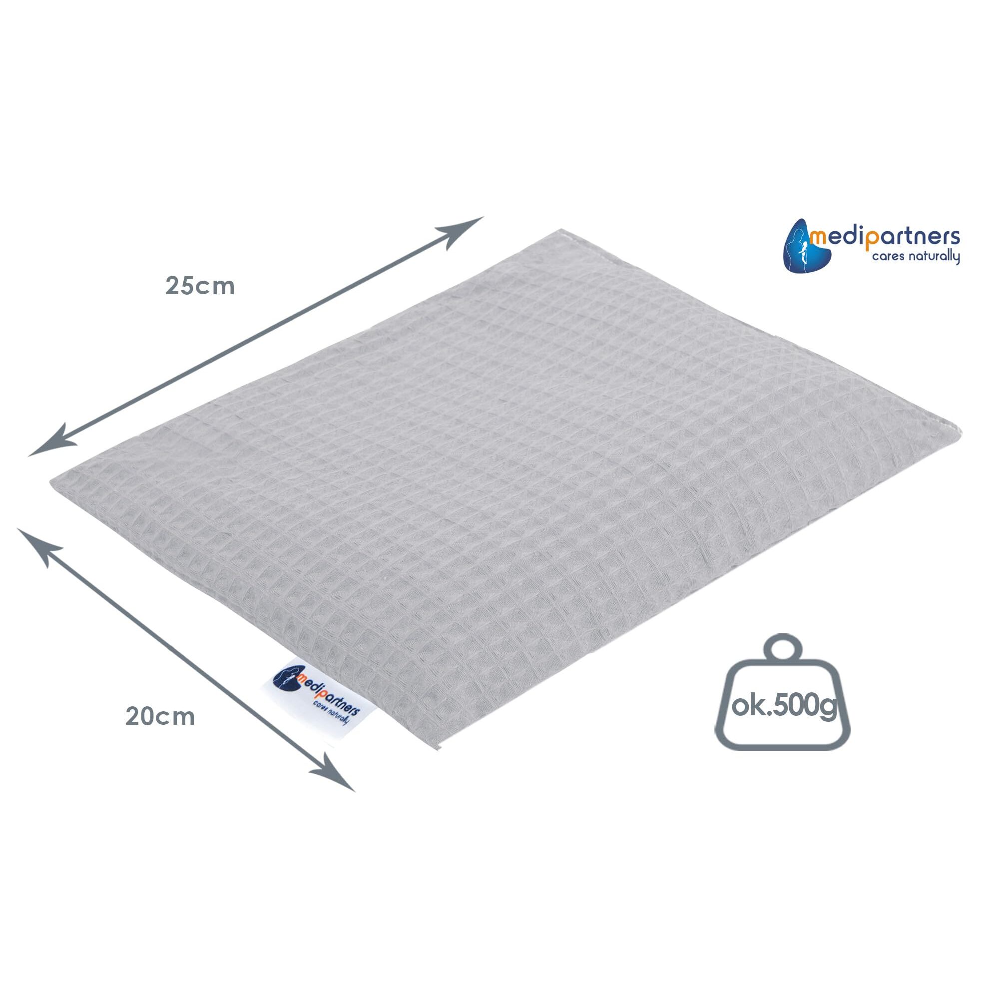Medi Partners Kirschkernkissen Mikrowelle 20x25cm Körnerkissen gross Wärmekissen 500g Rechteck 100% Baumwolle Öko Natur Massagetherapie - Kirschkernkissen nacken schulter Kältetherapie (Grau Waffel)