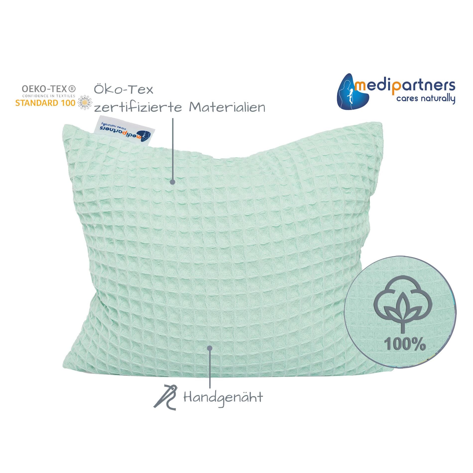 Medi Partners Kirschkernkissen Mikrowelle 20x25cm Körnerkissen gross Wärmekissen 500g Rechteck 100% Baumwolle Öko Natur Massagetherapie - Kirschkernkissen nacken schulter Kältetherapie (Minze Waffel)