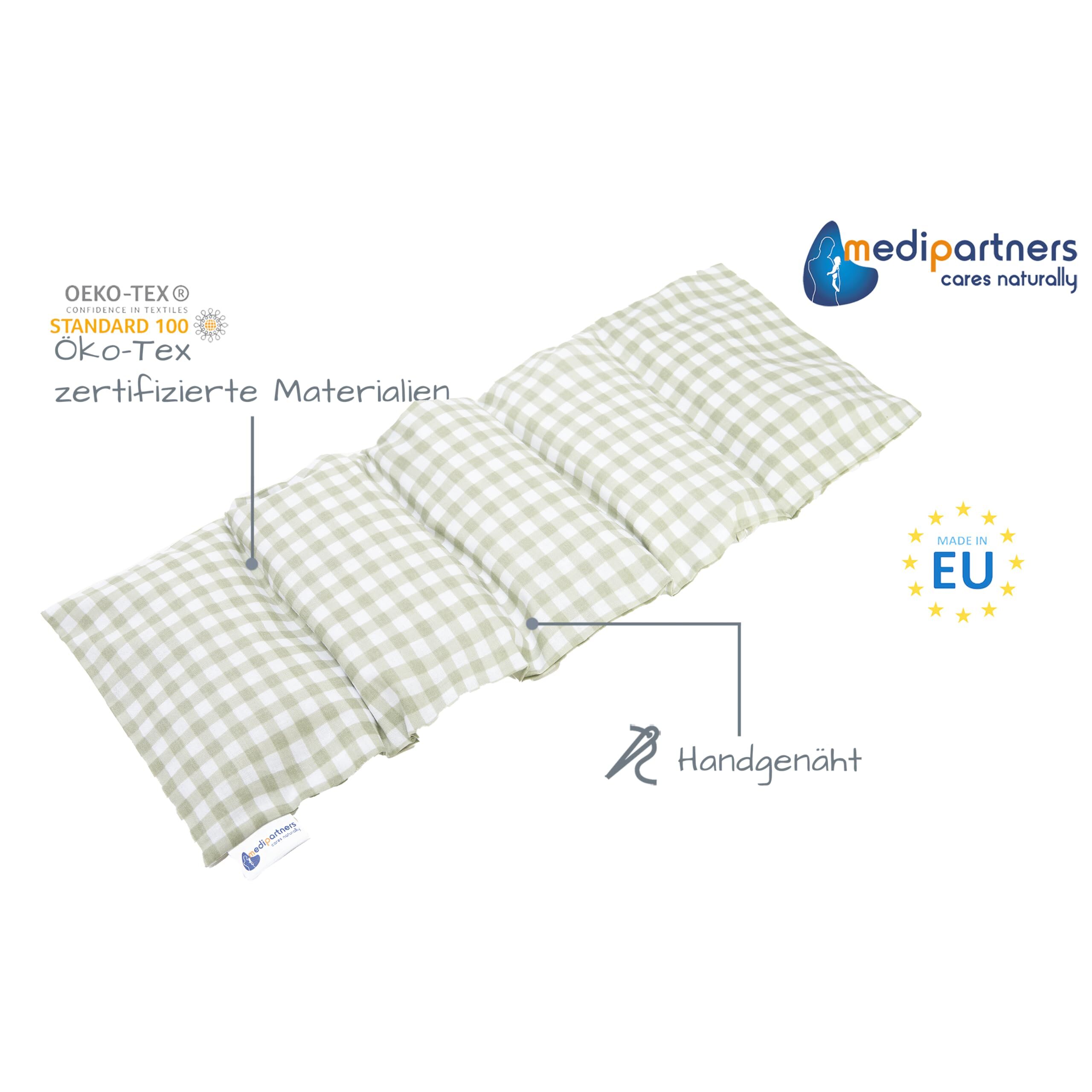 Medi Partners Kirschkernkissen Mikrowelle 60x20cm Körnerkissen gross Wärmekissen 800g 100% Baumwolle 5 kammern abnehmbarer Bezug - Kirschkernkissen nacken schulter Kältetherapie (Kariert)