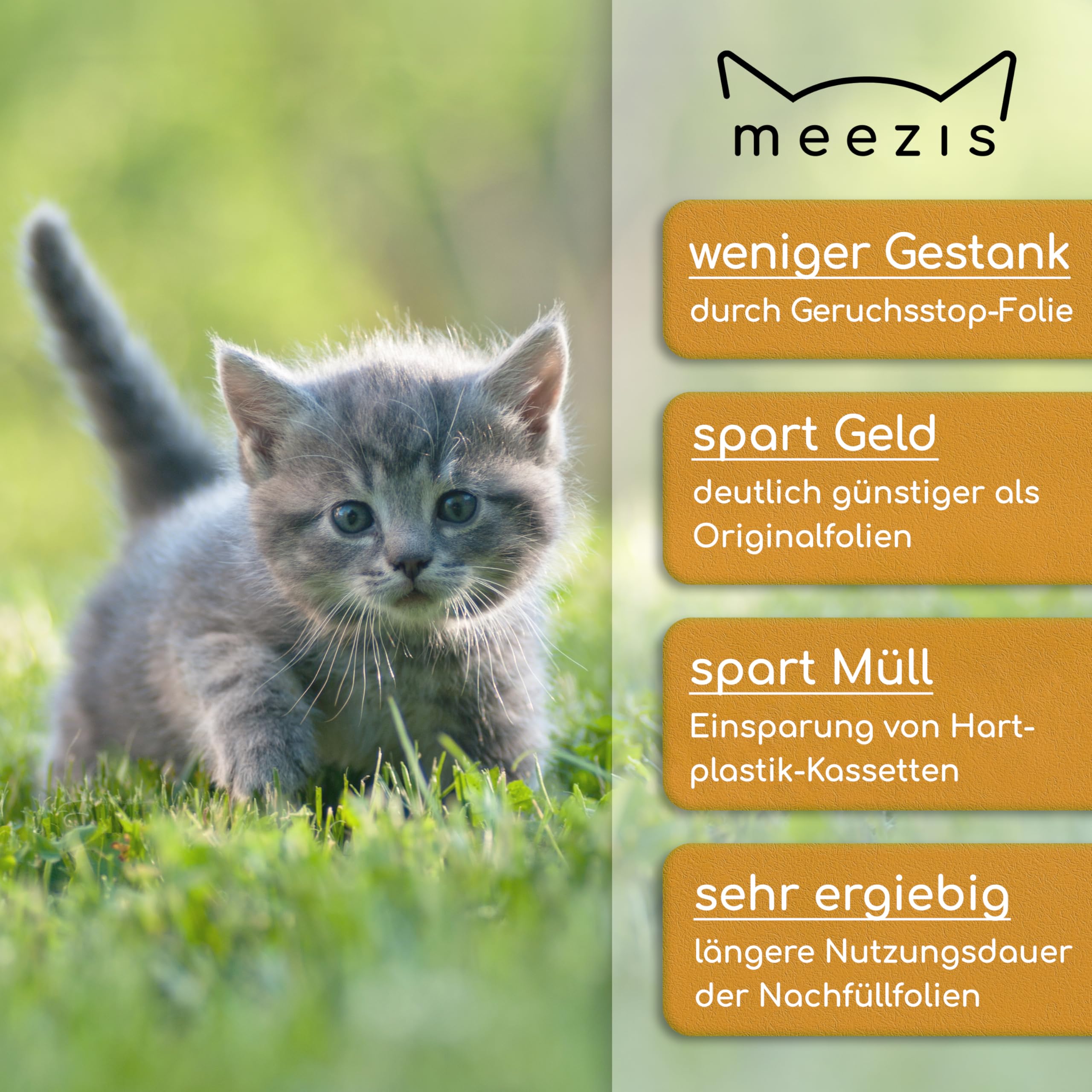 meezis Nachfüllfolie 4-Pack - kompatibel mit Nachfüllkassetten für Katzenstreu-Entsorgungseimer; geruchsdichte und strapazierfähige Nachfüllfolien für Katzen-Mülleimer (4 Stück)