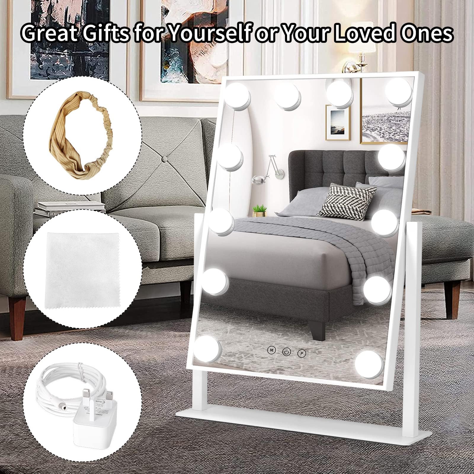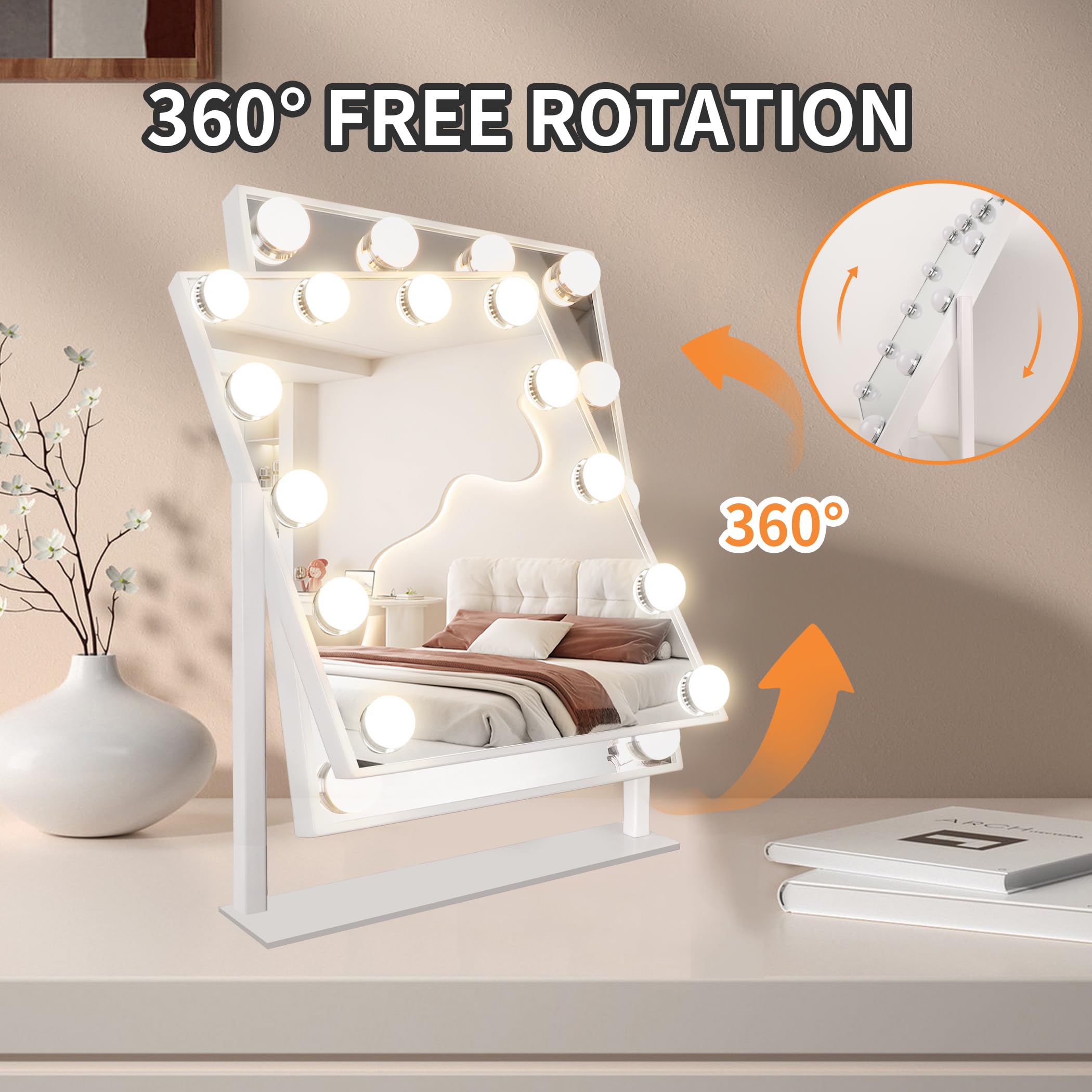 Meidom Hollywood Spiegel mit 12 Dimmbaren LED, 3 Farbmodi und Empfindlichem Touchscreen, 35,5 x 47CM, 360° Drehbarer Schminkspiegel mit Beleuchtung für Schminken, Schlafzimmer, Ankleidezimmer, Weiss