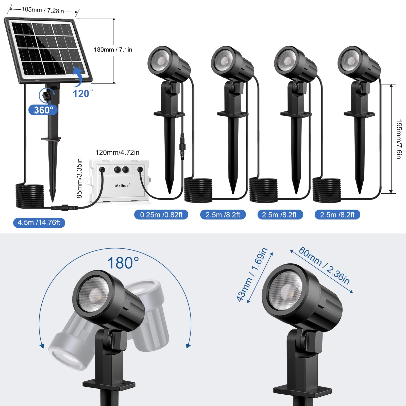 MEIHUA Solar Strahler mit Fernbedienung 2700K 4000K 6500K 3 Helligkeit 2 Dynamische Modi Gartenbeleuchtung IP66 Wasserdichte Gartenleuchten Timer Solarlampen für Aussen Garten Bäume Pfade 4 Stück