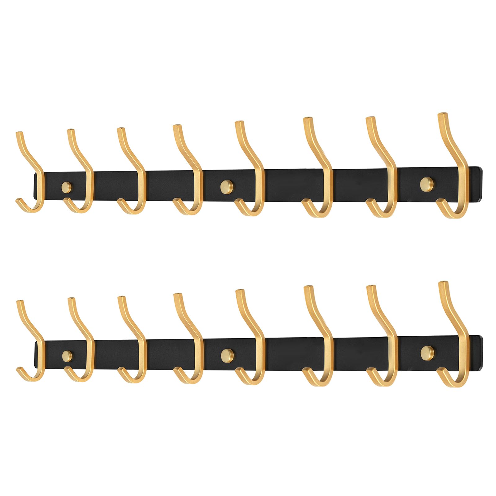 MEIJO Garderobenhaken Edelstahl, Hakenleiste Kleiderhaken Wand mit 8 Haken, Garderobe Garderobenleiste Wandgarderobe für Schlafzimmer Bad Küche (8 Haken 2 Stück, Schwarz & Golden)