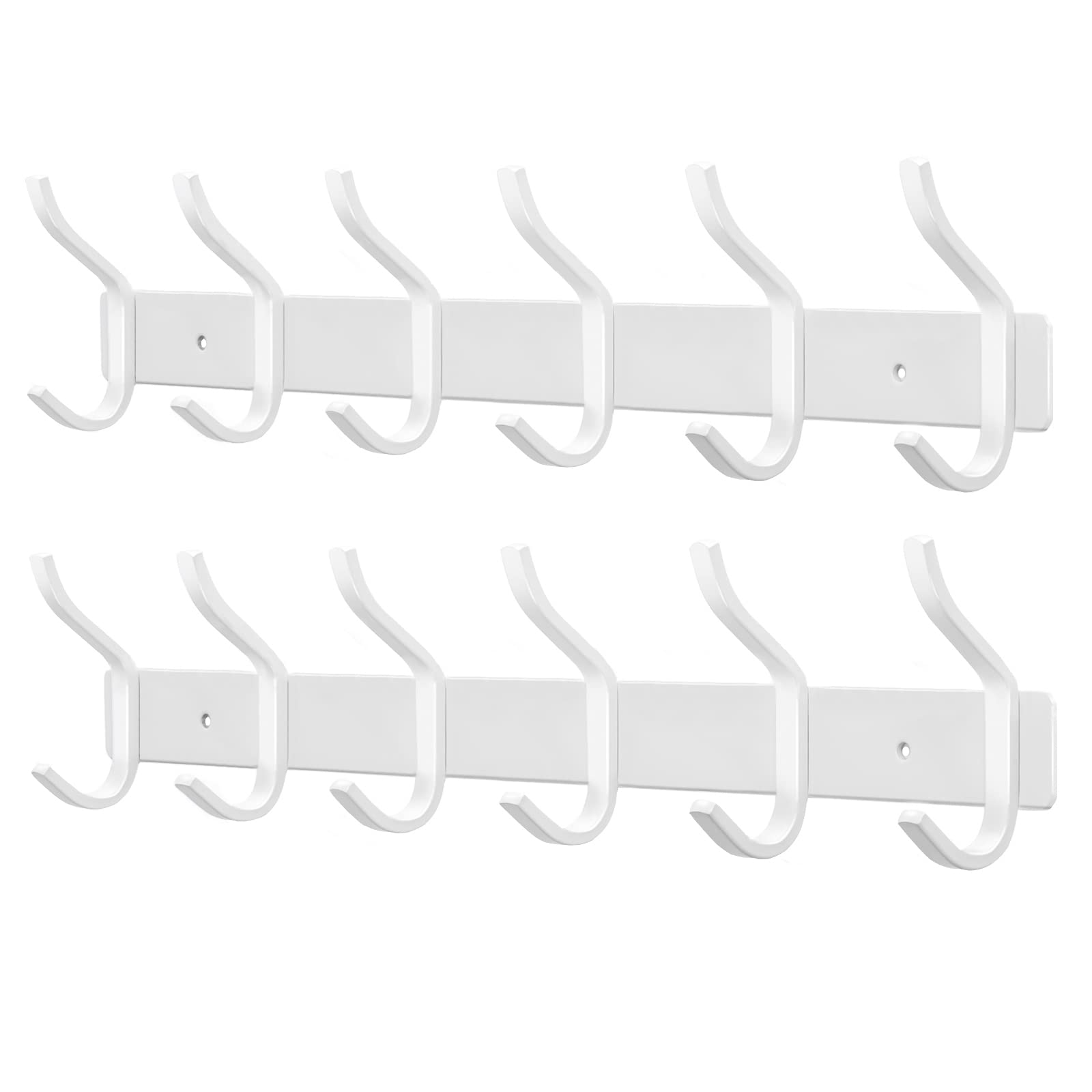 MEIJO Garderobenhaken Edelstahl, Hakenleiste Kleiderhaken Wand mit 6 Haken, Garderobe Garderobenleiste Wandgarderobe für Schlafzimmer Bad Küche (Weiss, 6 Haken 2 Stück)