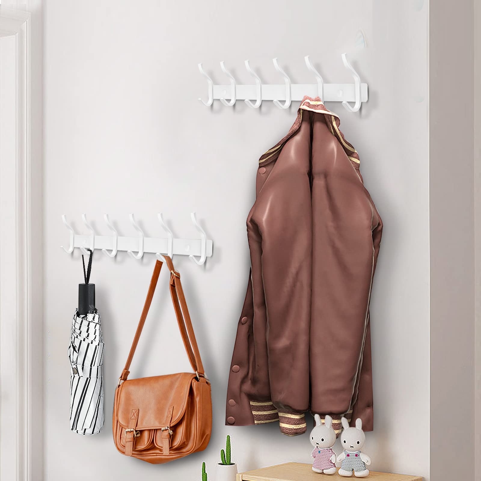 MEIJO Garderobenhaken Edelstahl, Hakenleiste Kleiderhaken Wand mit 6 Haken, Garderobe Garderobenleiste Wandgarderobe für Schlafzimmer Bad Küche (Weiss, 6 Haken)