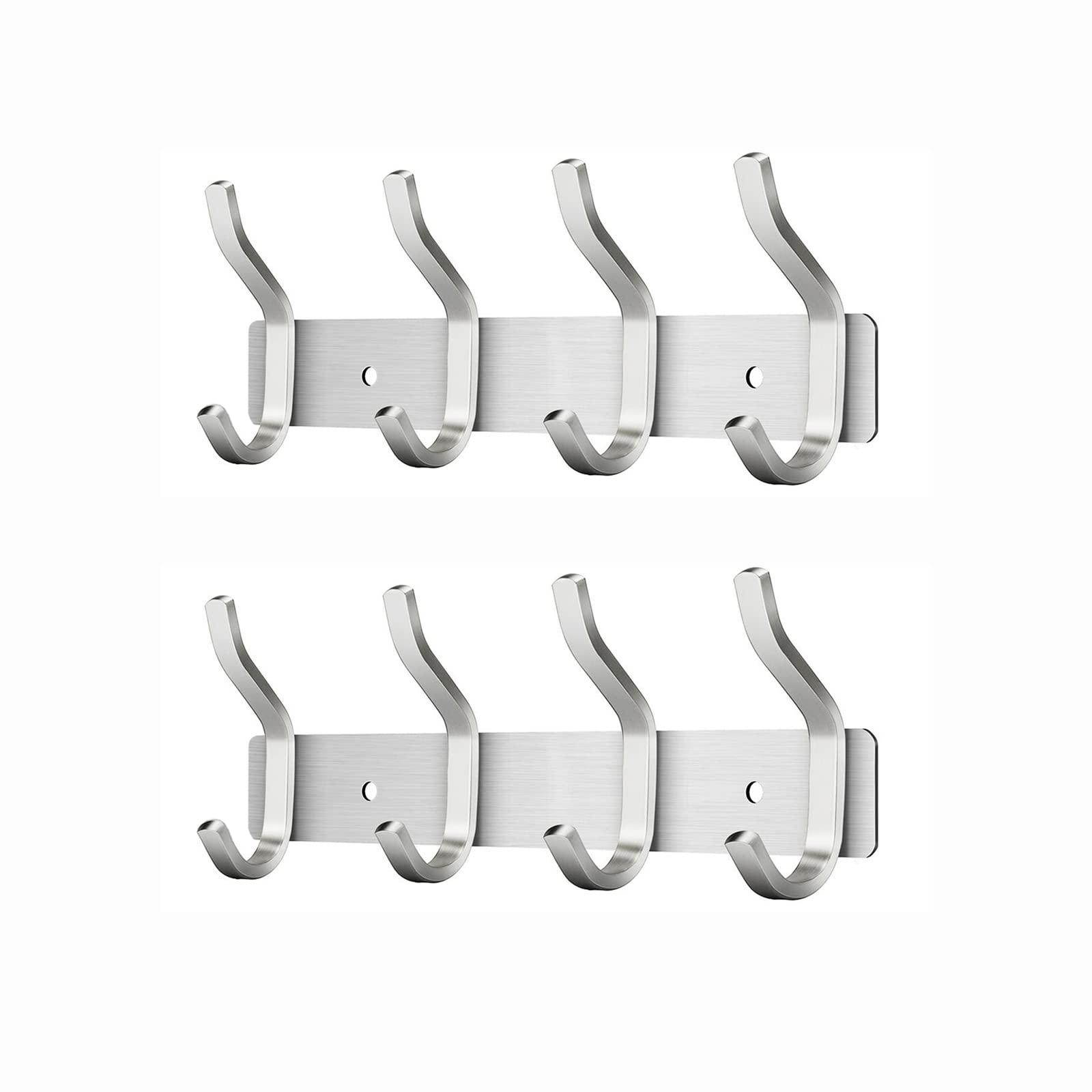 MEIJO Garderobenhaken Edelstahl, Hakenleiste Kleiderhaken Wand mit 4 Haken, Garderobe Garderobenleiste Wandgarderobe für Schlafzimmer Bad Küche (Silber, 4 Haken 2 Stück)
