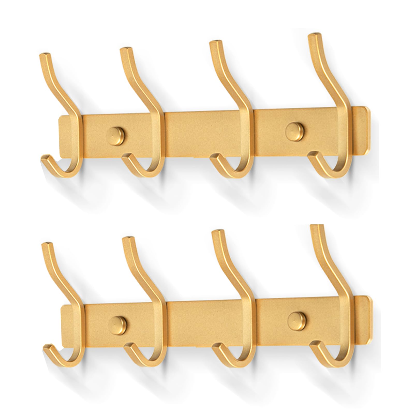 MEIJO Garderobenhaken Edelstahl, Hakenleiste Kleiderhaken Wand mit 4 Haken, Garderobe Garderobenleiste Wandgarderobe für Schlafzimmer Bad Küche (Golden, 4 Haken 2 Stück)