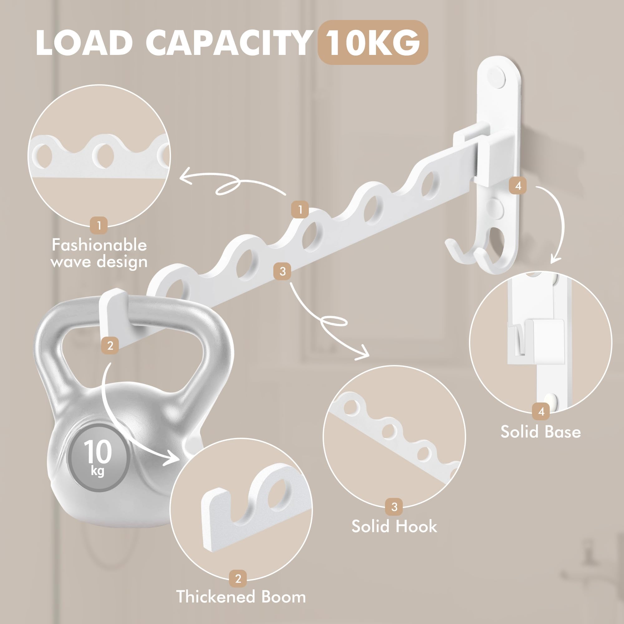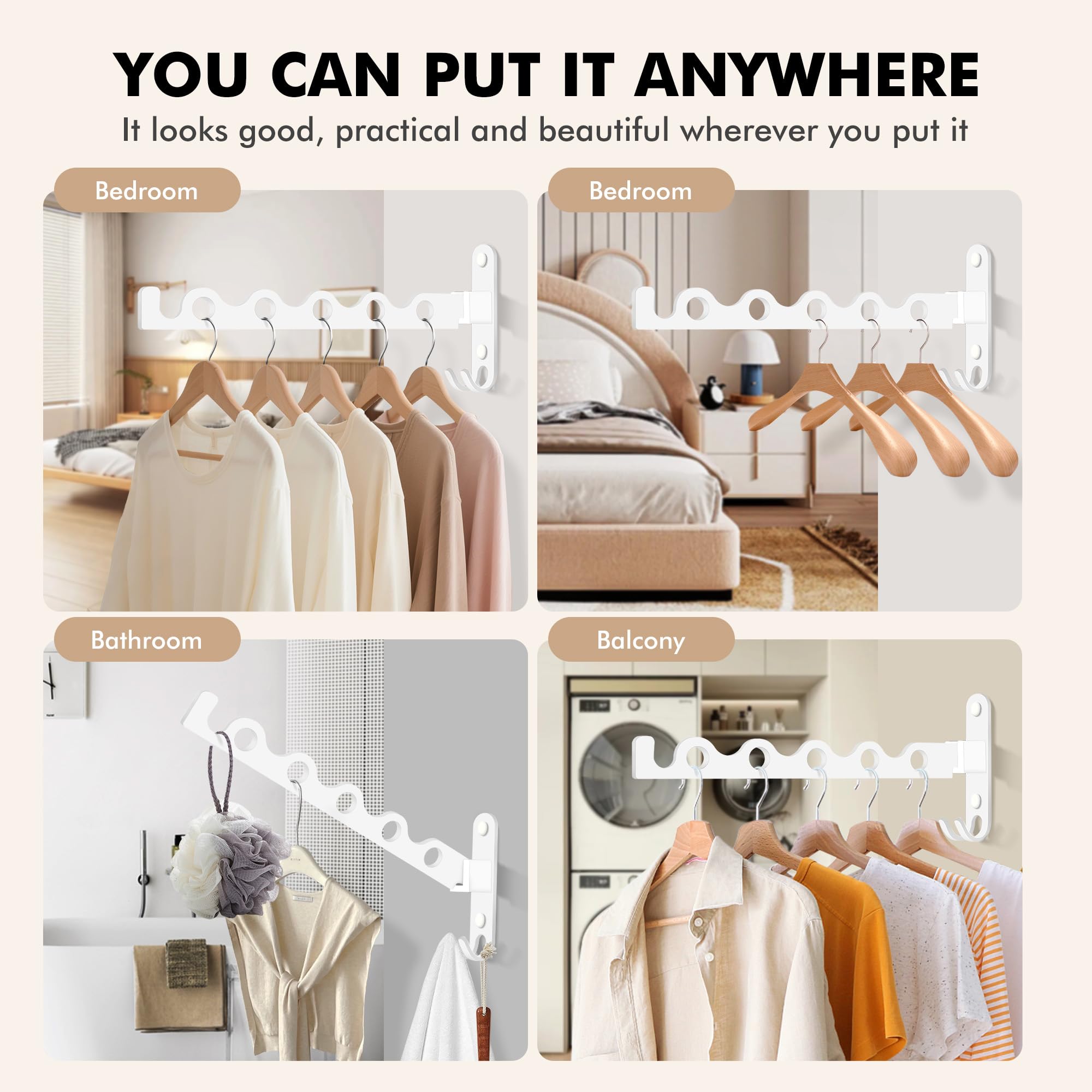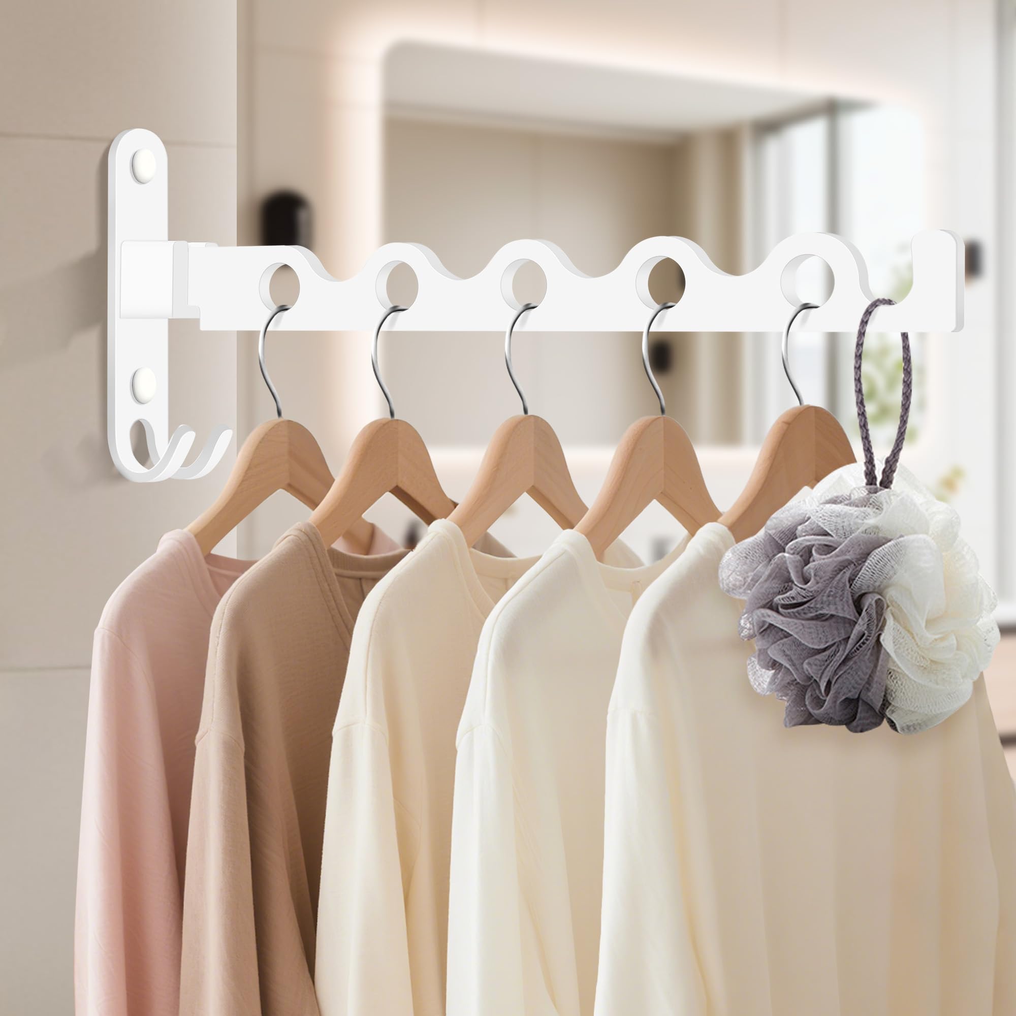 MEIJO Kleiderhaken Klappbar, Wand Kleiderständer Klapphaken Wandhaken Balkon Kleiderhaken für Waschküche Schlafzimmer Badezimmer (Weiss)