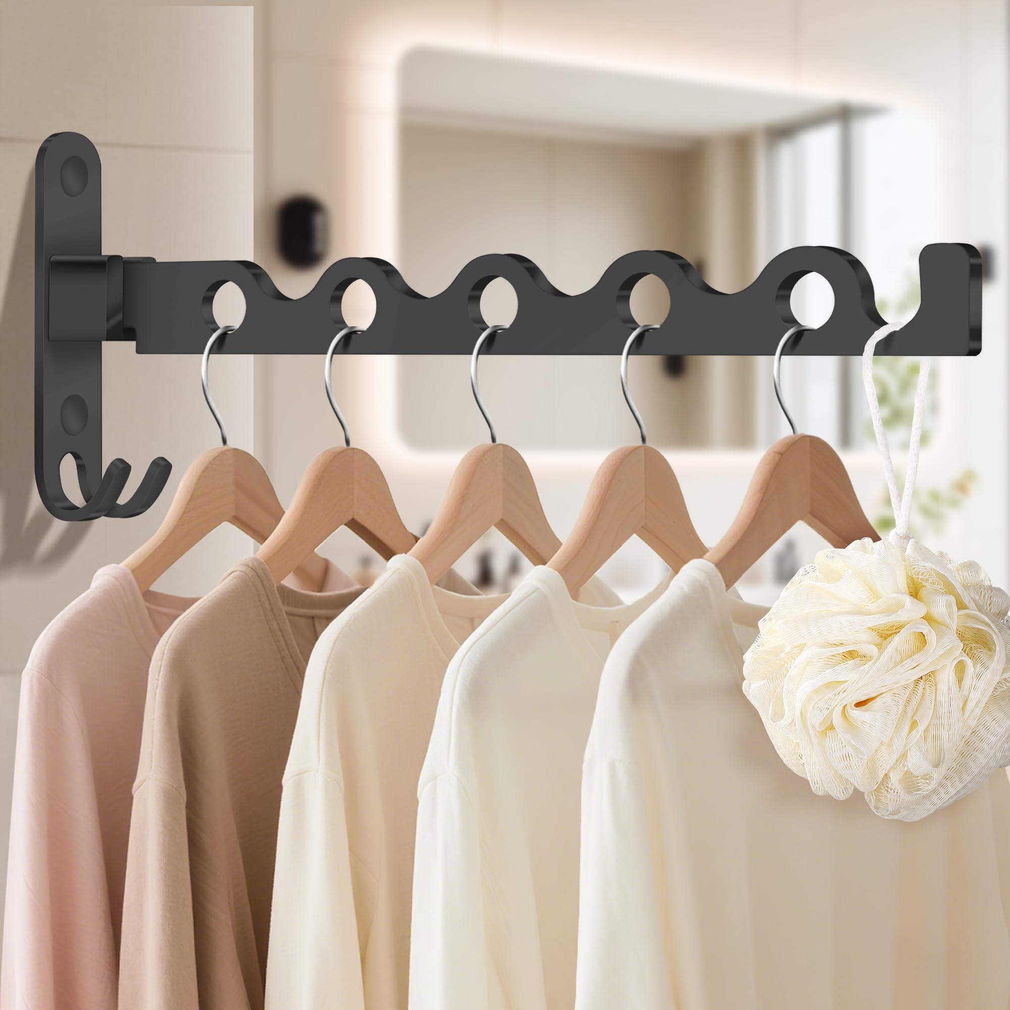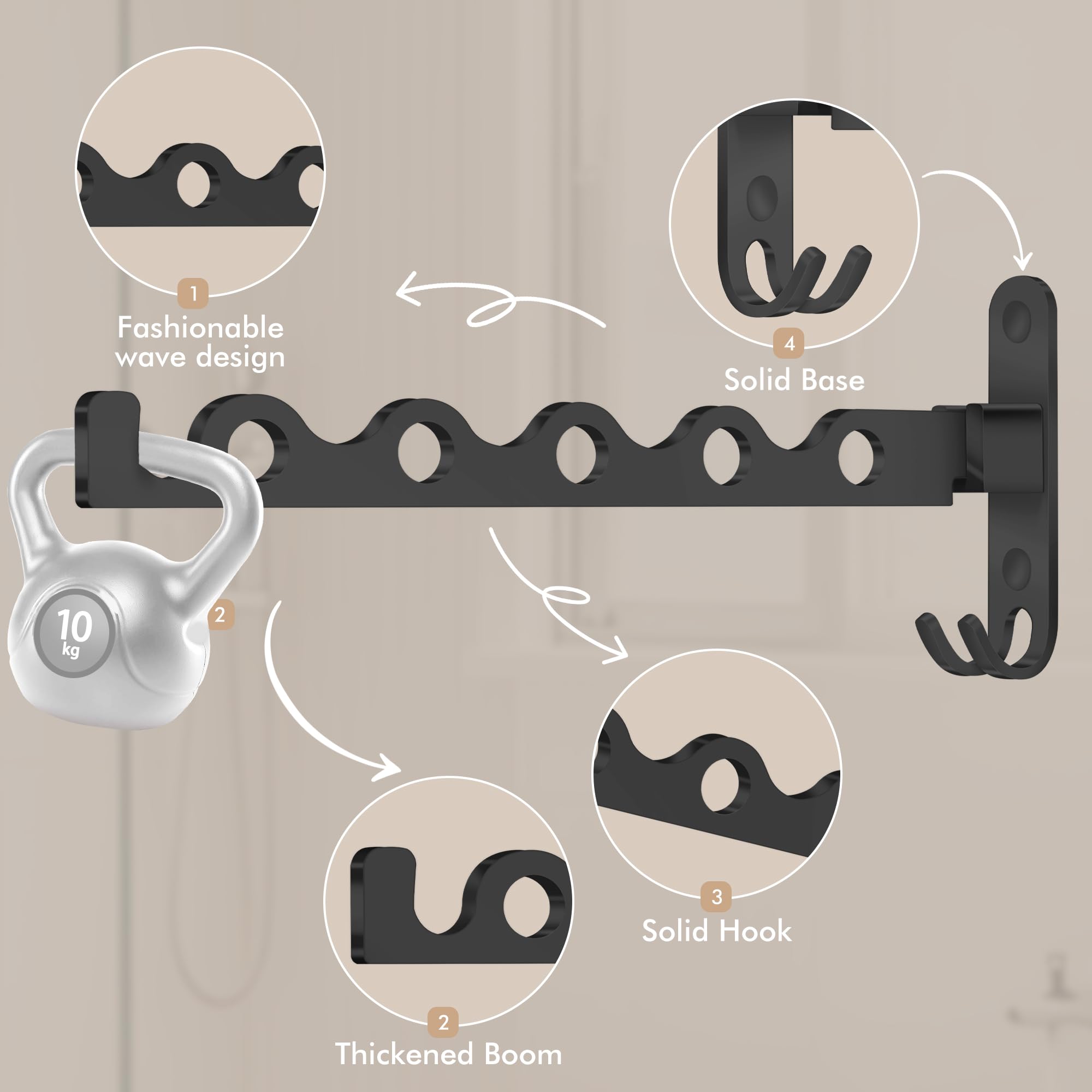 MEIJO Kleiderhaken Klappbar, Kleiderlüfter Kleiderständer Wand Klapphaken Wandhaken Balkon kleiderstange für Waschküche Schlafzimmer Badezimmer (Schwarz)