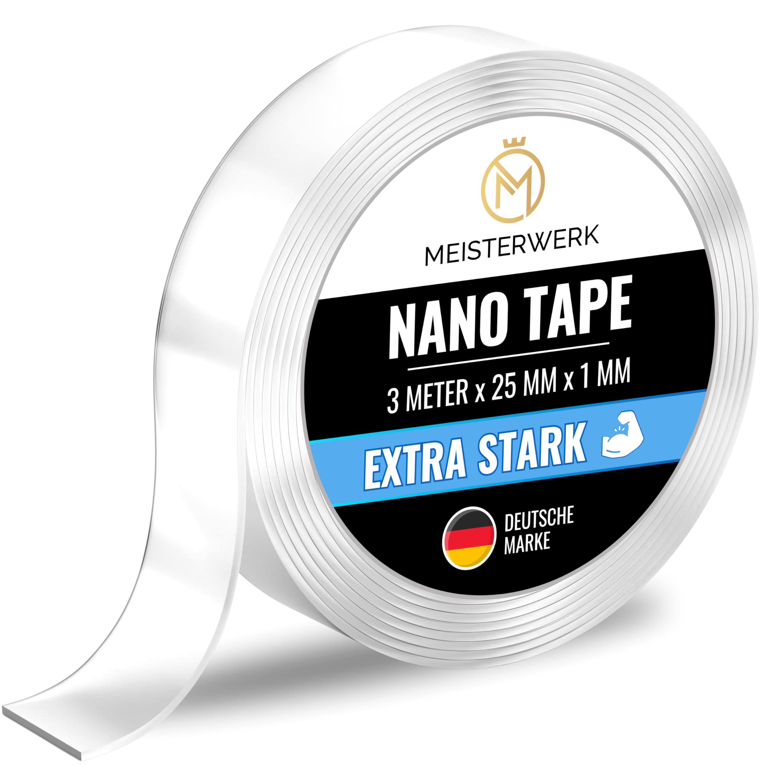 MEISTERWERK - Doppelseitiges Nano-Klebeband [EXTRA STARK] - Klebstofffrei & Spurlos dank Gecko-Effekt I Rutschfest - Waschbar & Wiederverwendbar