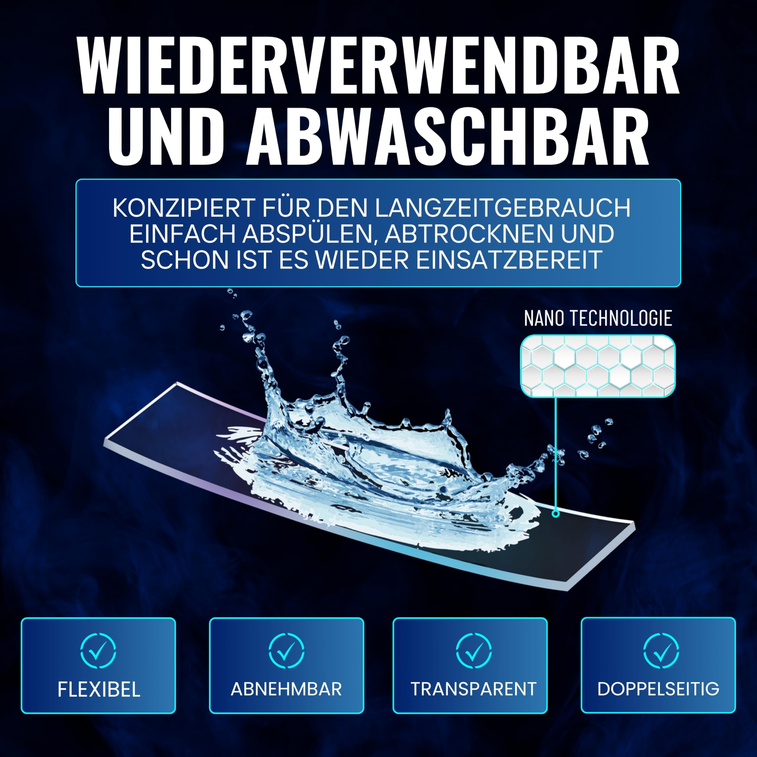 MEISTERWERK - Doppelseitiges Nano-Klebeband [EXTRA STARK] - Klebstofffrei & Spurlos dank Gecko-Effekt I Rutschfest - Waschbar & Wiederverwendbar