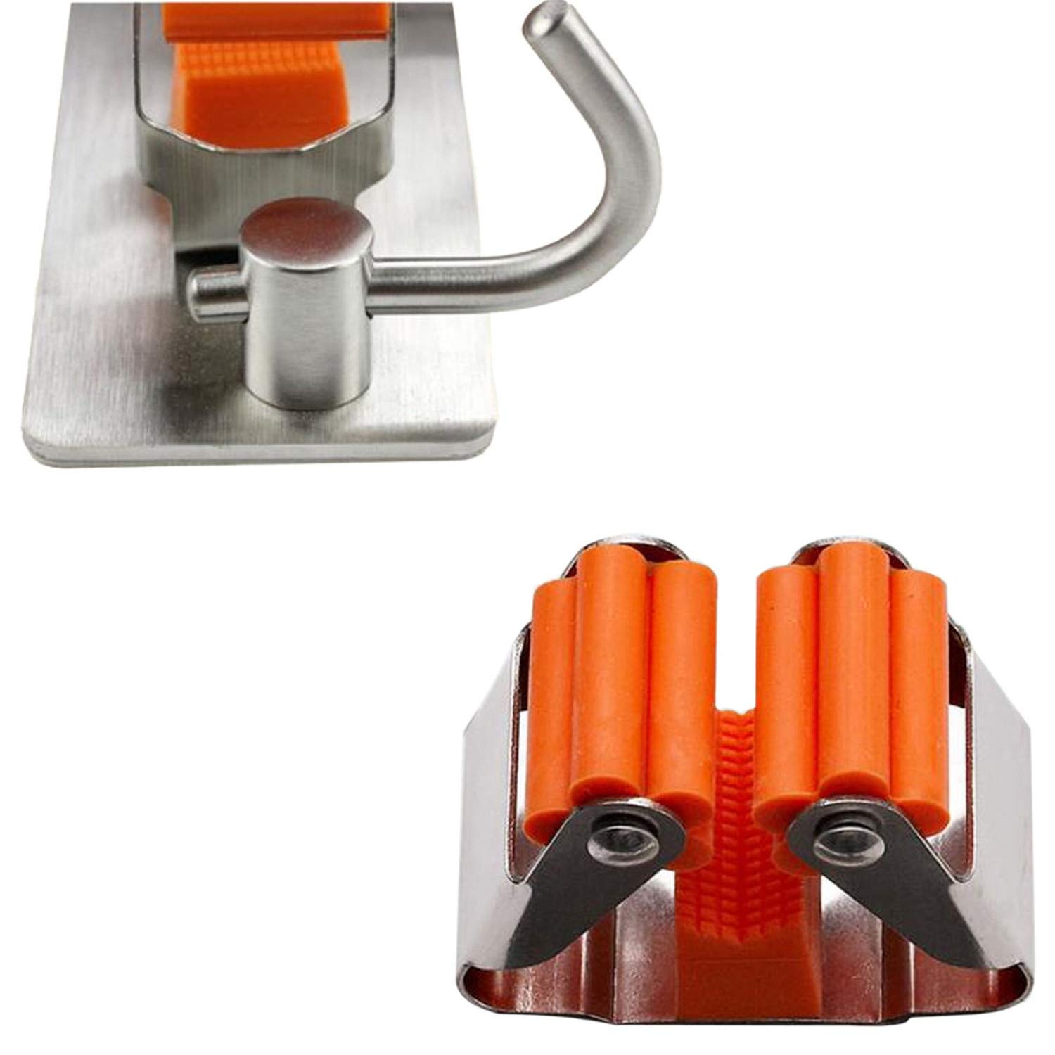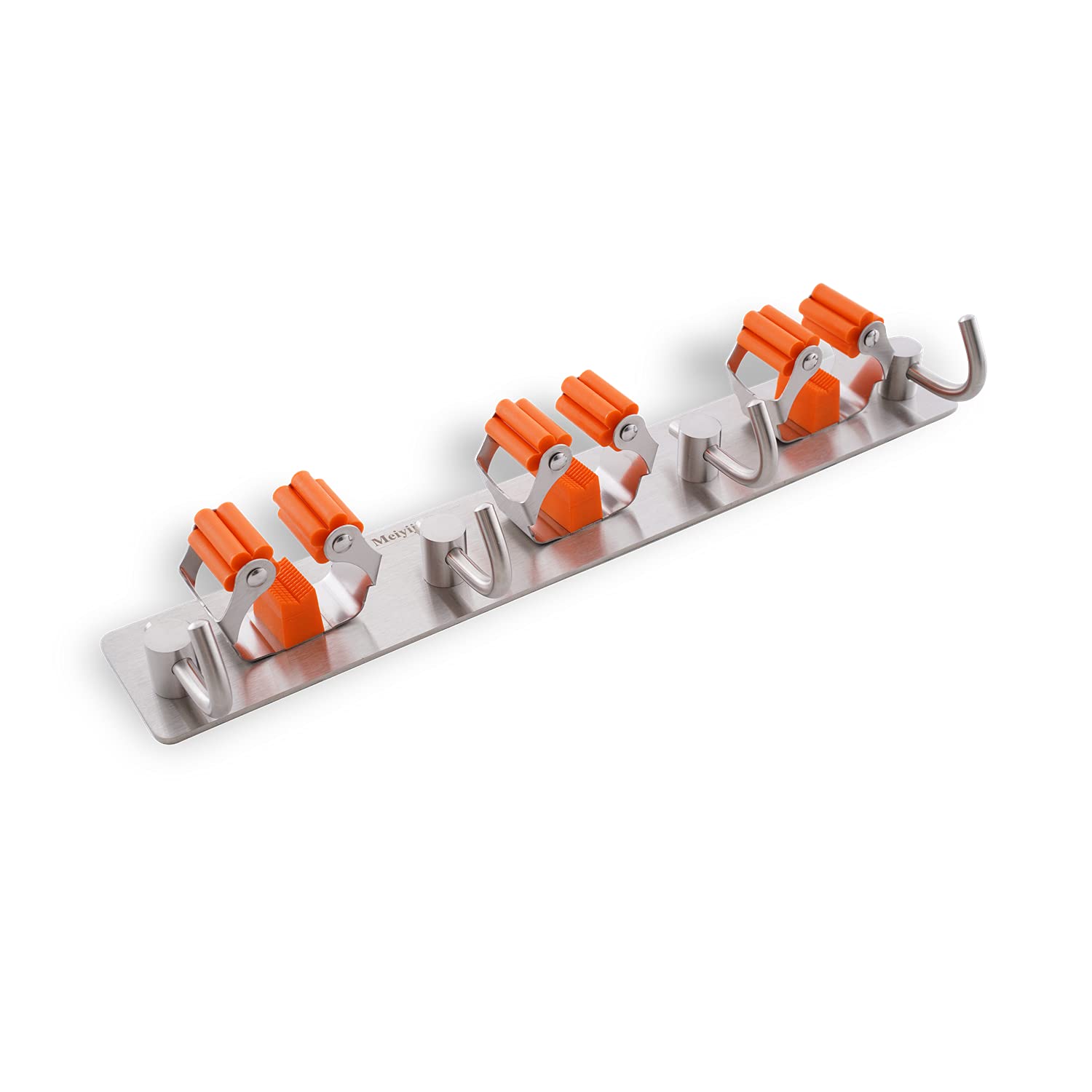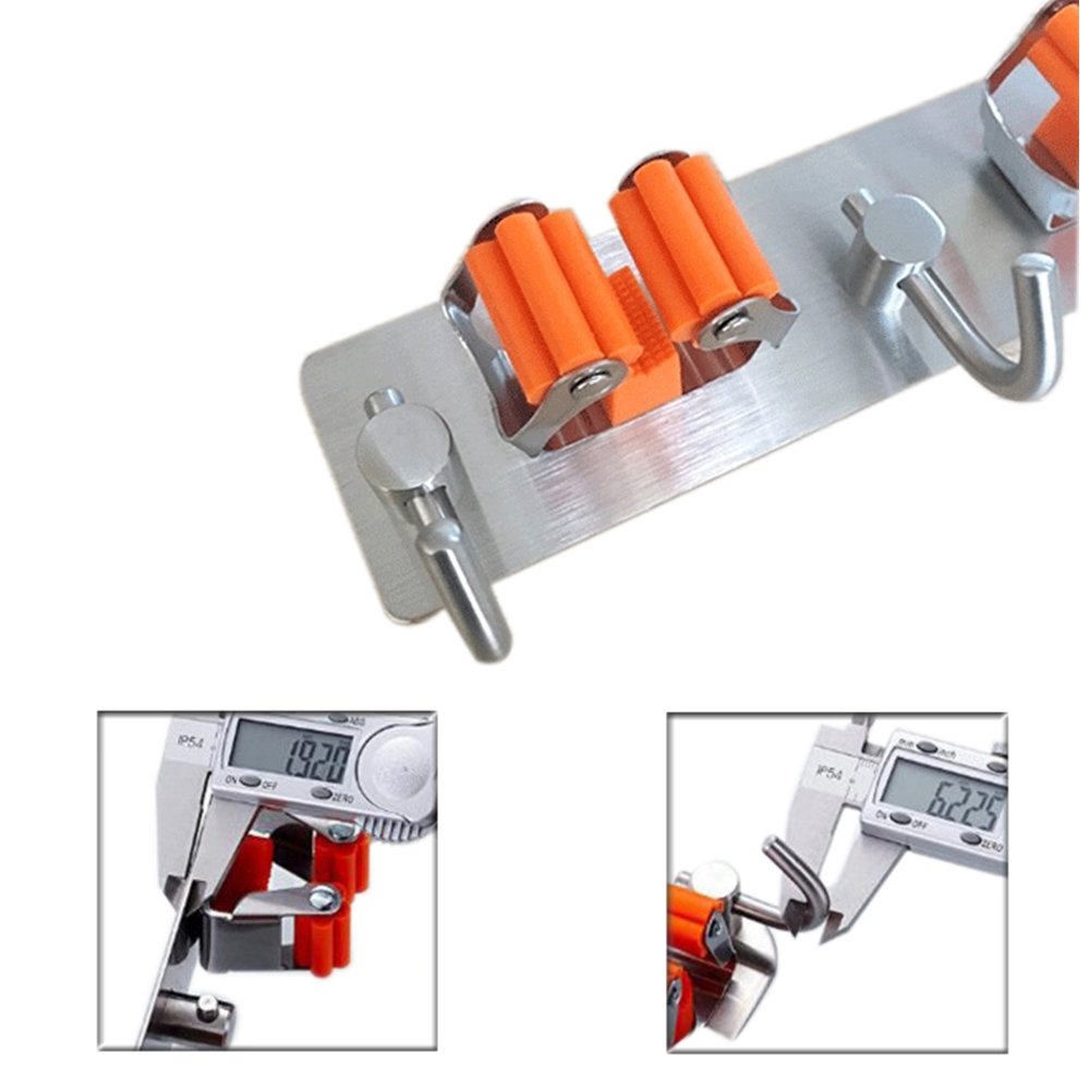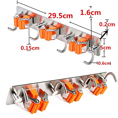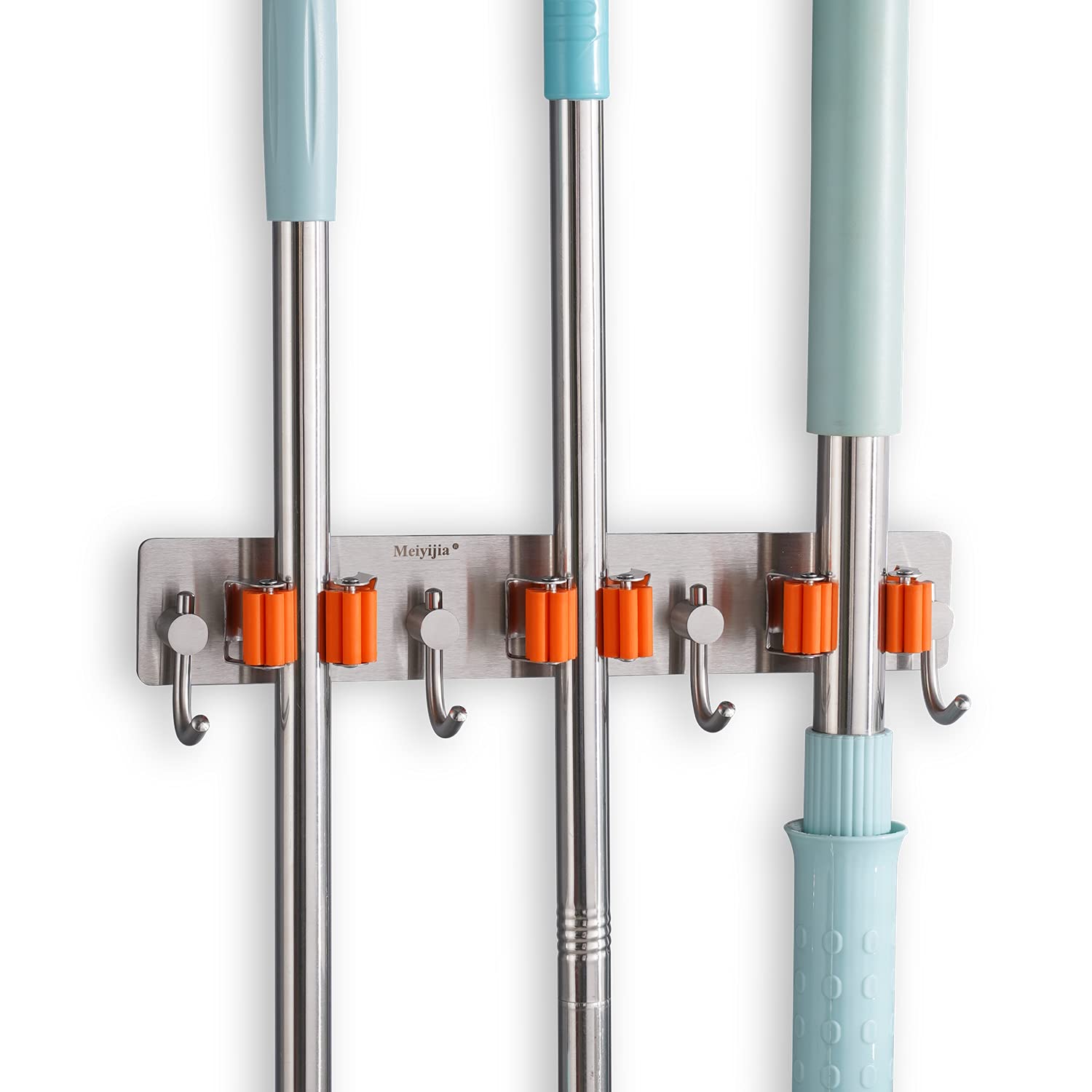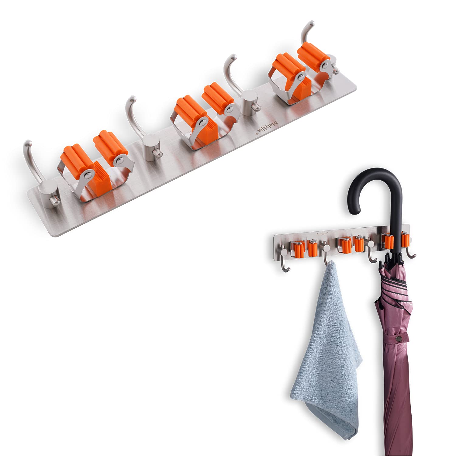 Meiyijia Wandhalterung Multifunktional, selbstklebend, Mop Halterung, 304 gebürstet, Edelstahl, zum Aufhängen von Werkzeugen, 3 Schlitzen und 4 Haken
