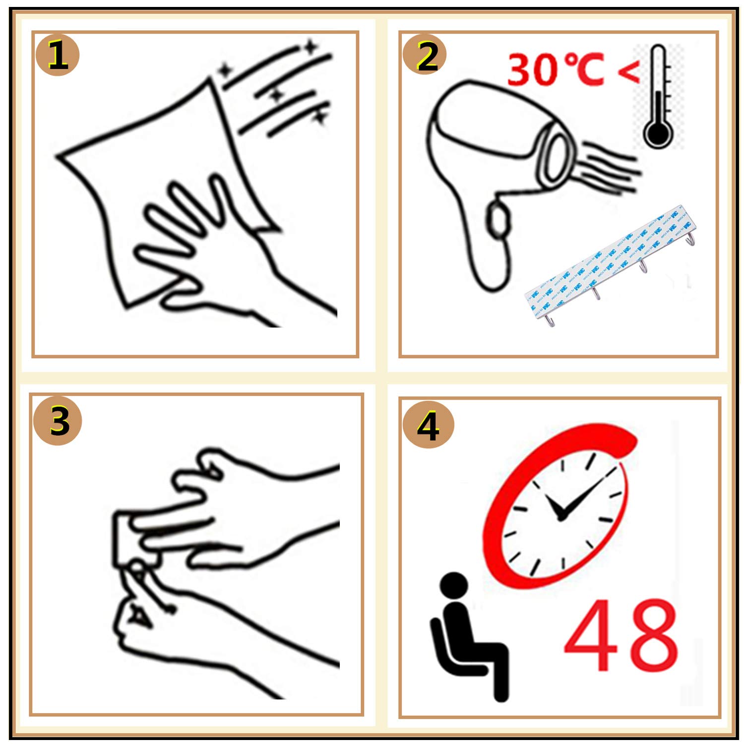 - Bitte verwenden Sie den Klebehaken 48 Stunden nach der Installation, die Haftung reicht aus, um die Last zu tragen.