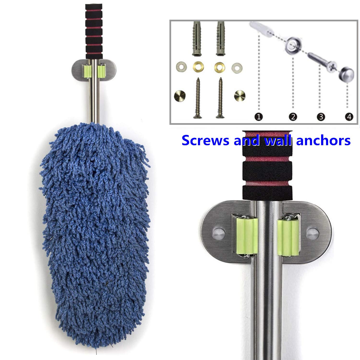Contenuto della confezione: 2 x porta scopa da parete/4 x viti, bulloni di espansione