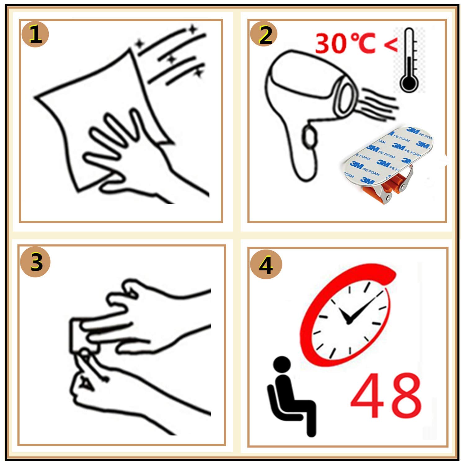 - Si prega di utilizzare il gancio adesivo 48 ore dopo l'installazione, l'adesione sarà sufficiente solo per sopportare il carico
