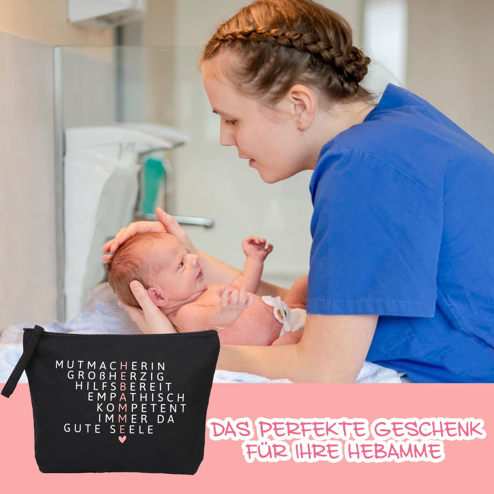 MEJOSER Kosmetiktasche „Hebamme mit Herz“ – Kleines Dankeschön-Geschenk & Kulturbeutel