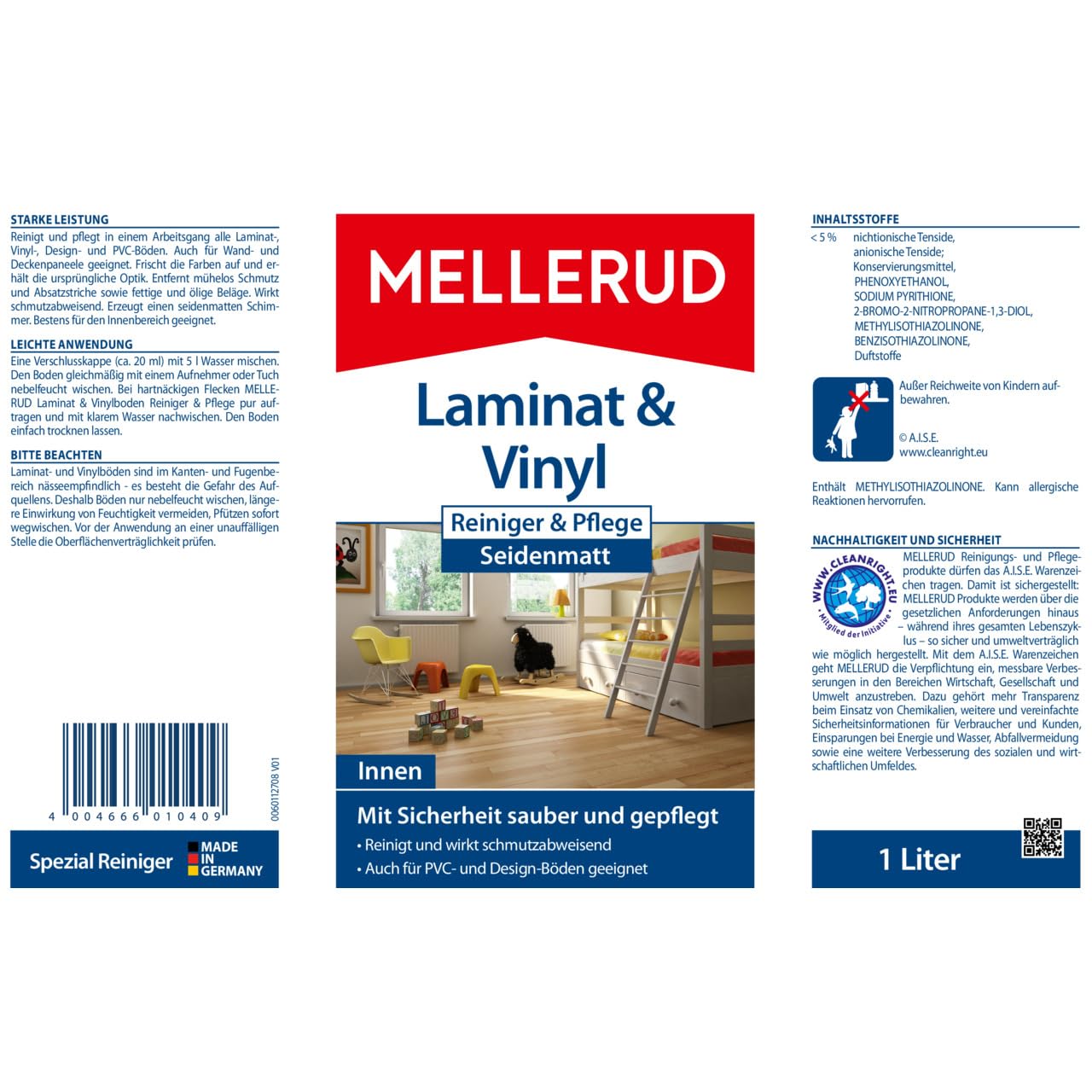 MELLERUDLaminat & Vinyl Reiniger & Pflege Seidenmatt 1,0 l | 1 x 1 l | Zuverlässiges Mittel zur Reinigung von Laminat-Oberflächen
