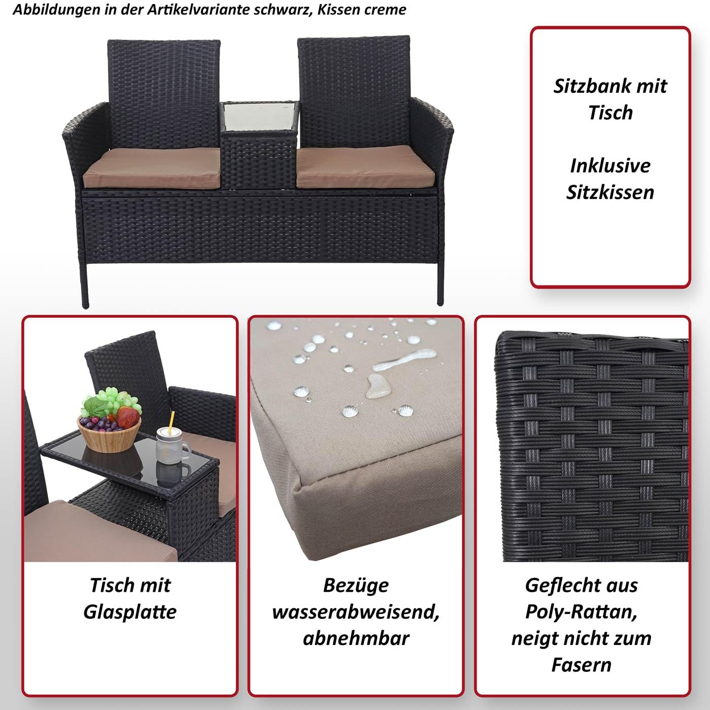- Diese schicke Sitzbank setzt mit dem integrierten Tisch extravagante Akzente auf Ihrem Balkon, Ihrer Terrasse oder in Ihrem Wintergarten. Schaffen Sie sich einen neuen Lieblingsplatz für schöne Stunden mit Ihren Liebsten.