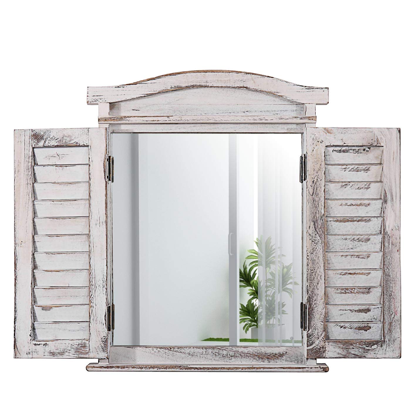 Mendler Wandspiegel Spiegelfenster mit Fensterläden 53x42x5cm - weiss Shabby