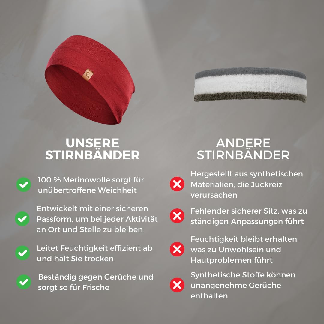 Bleiben Sie bequem und konzentriert mit dem menique Stirnband aus 100 % Merinowolle – die ultimative Wahl für Männer und Frauen, die nach einem vielseitigen Sport-Stirnband, Laufstirnband oder Ohrenwärmer Stirnband suchen. Hergestellt aus leichter und dennoch strapazierfähiger Merinowolle, Merino-Stirnband für Damen und Herren ist natürlich atmungsaktiv, schweissabsorbierend und schnell trocknend, hält Sie während des Trainings kühl und bei kaltem Wetter warm. Egal, ob Sie ein Laufstirnband, ein Fitness-Stirnband oder ein Thermo-Stirnband benötigen, dieses Stück passt sich jeder Aktivität an. Schlankes und dennoch dehnbares Design sorgt für eine gute Passform ohne zu verrutschen, wodurch das Stirnband perfekt als Schweissband zum Laufen, Radfahren, Wandern, Yoga oder Fitnesstraining geeignet ist. Dank der natürlichen thermoregulierenden Eigenschaften von Merino funktioniert Merino-Accessoire genauso gut wie ein Winter-Stirnband oder Ohrenwärmer für Damen und Herren, bietet zuverlässige Wärme ohne Überhitzung. Entworfen für Leistung und Stil, Sport-Stirnband dient auch als Stirnband für langes Haar, hält das Haar an Ort und Stelle, während Sie sich bewegen. Ideal für Outdoor-Workouts, Skifahren oder Freizeitkleidung, weich auf der Haut, hypoallergen und geruchsabweisend – eine clevere Alternative zu synthetischen Sport-Stirnbändern. Von Herren-Stirnbändern bis hin zu Laufstirnbändern für Frauen, dieses Unisex-Stirnband aus Wolle ist Ihr Lieblingsaccessoire für alle Jahreszeiten. Leicht, verstaubar und multifunktional, Stirnband bietet ganztägigen Komfort und zeitlose Funktionalität.