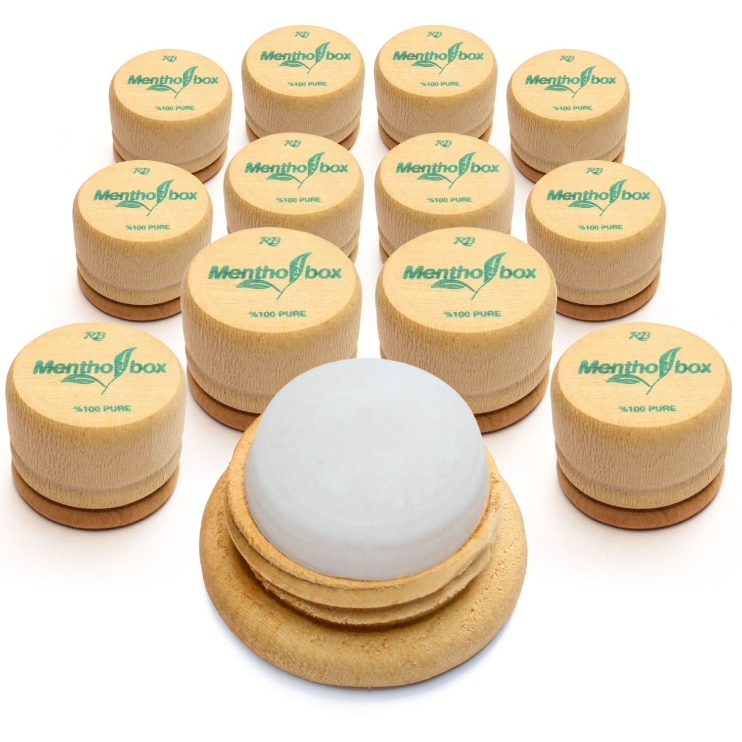 Mentholbox Mentholstein 12x6 g – Kühler Menthol-Macaron zur Linderung von Migräne, Stirn- und Nackenmassage, Menthol Spa, reines Kristall-Menthol