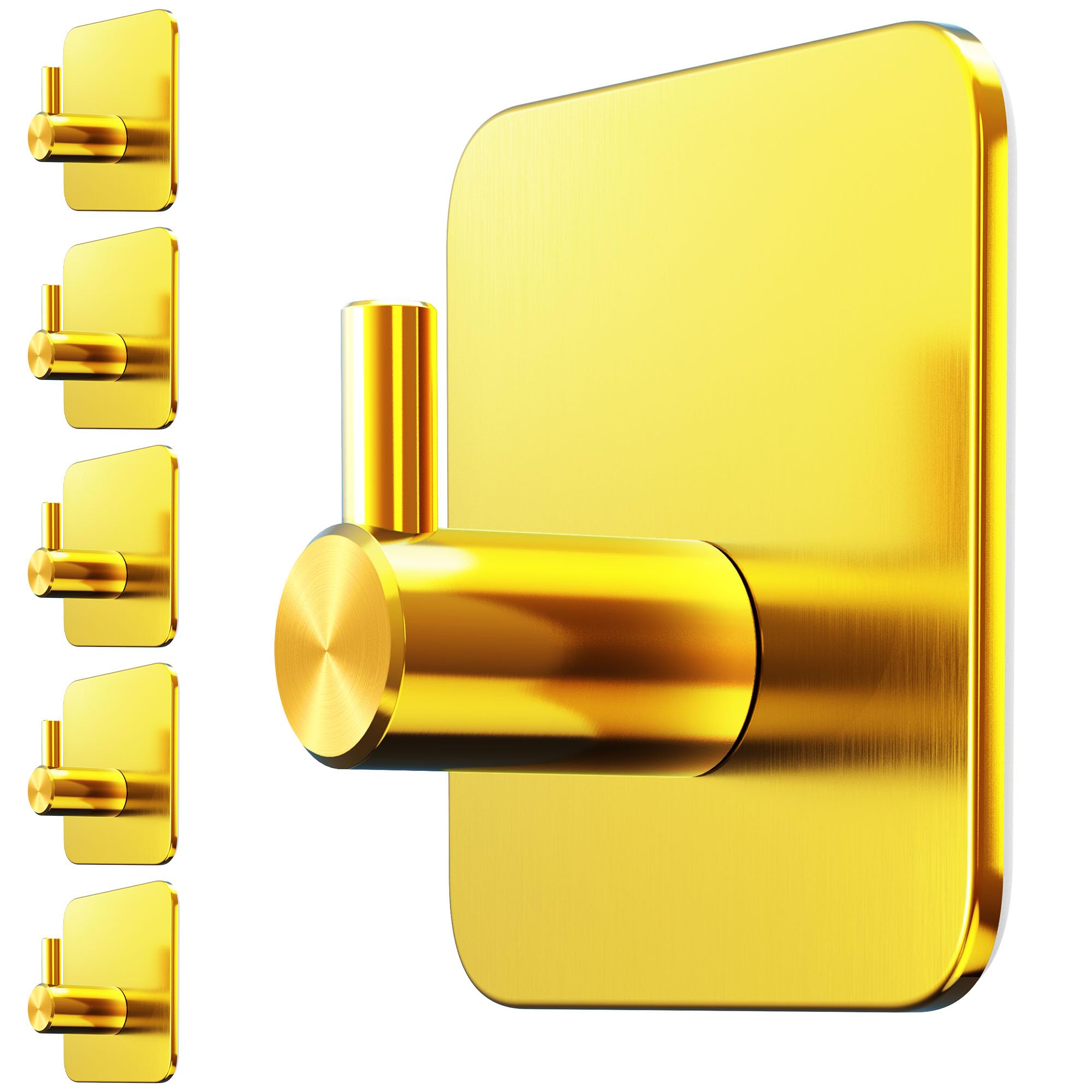 Menz Handtuchhalter ohne Bohren, 6 Haken im Set, golden – Wasserfeste Klebehaken, Edelstahl Handtuchhaken für Bad, hochwertige Haken selbstklebend, Badezimmer Handtuchhalter mit hoher Tragkraft