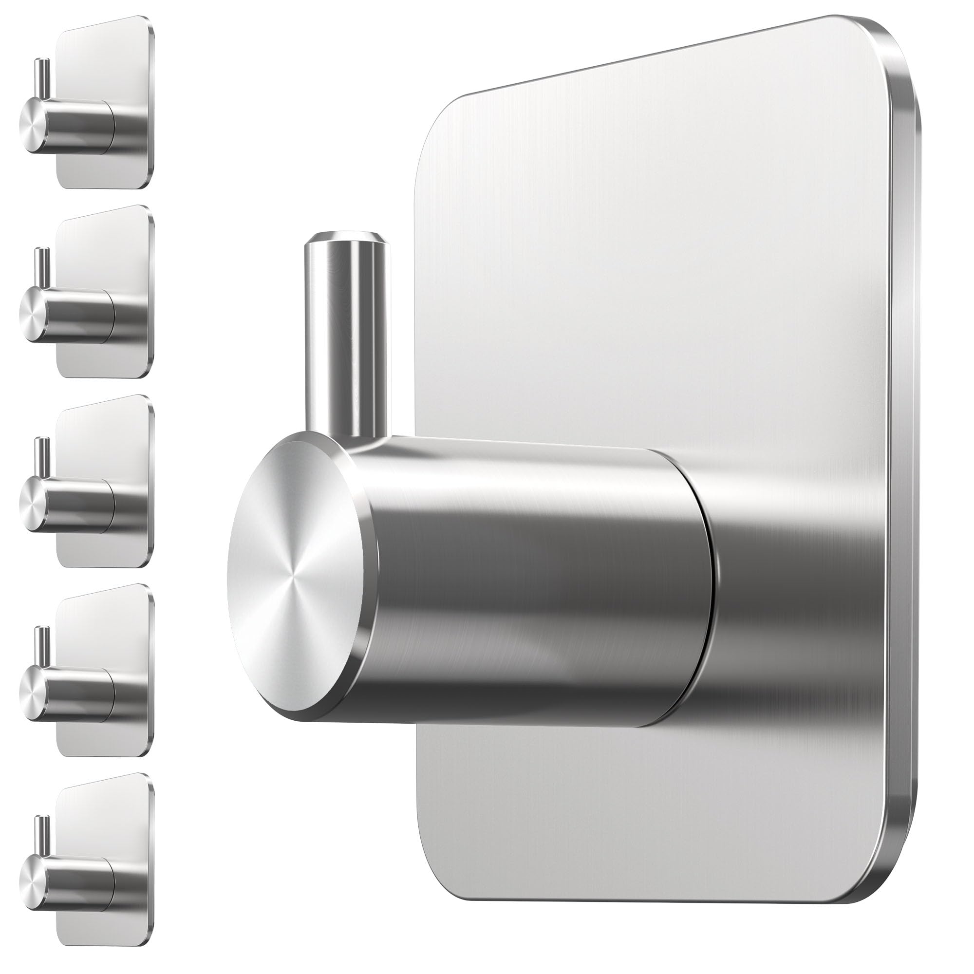 Menz Handtuchhalter ohne Bohren, 6 Haken im Set – Wasserfeste Klebehaken, Edelstahl Handtuchhaken für Bad, hochwertige Haken selbstklebend, Badezimmer Handtuchhalter mit hoher Tragkraft
