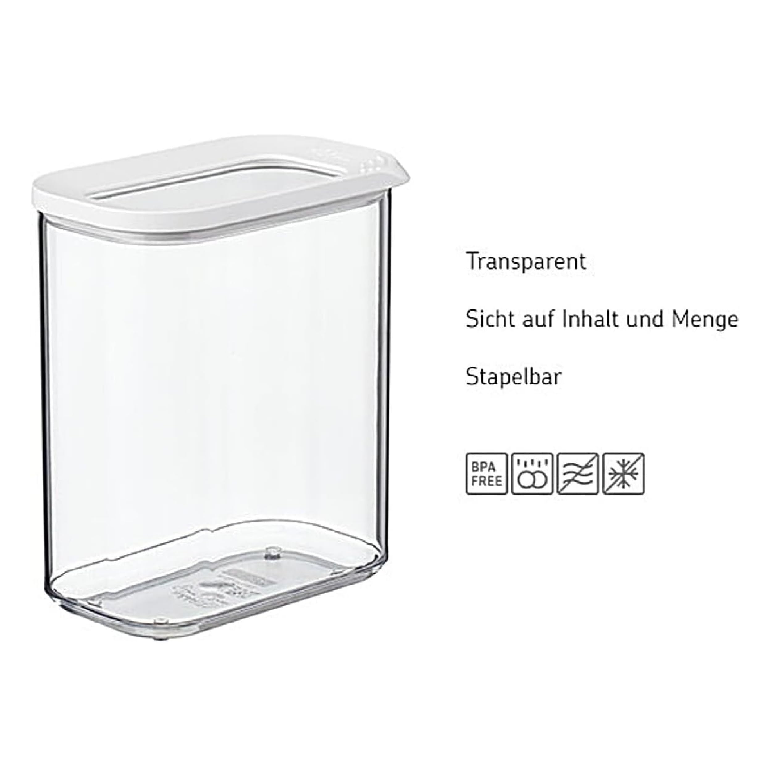 FUNKTION: Die Modula Kunststoffboxen mit Deckel sind praktische Küchenvorratsbehälter für Nudeln, Mehl, Haferflocken, Milchpulver und andere trockene Lebensmittel. Ideal für Organisation in der Küche