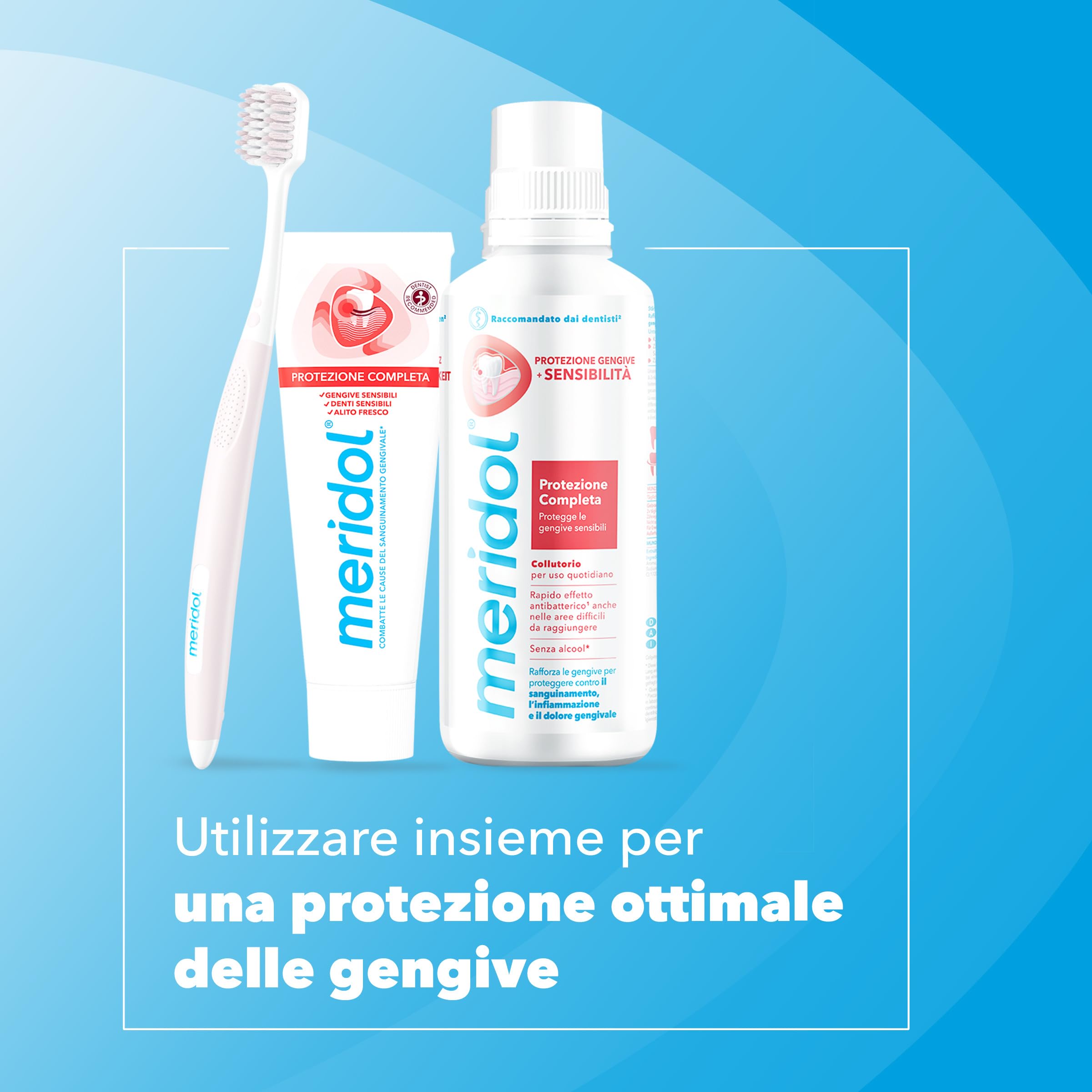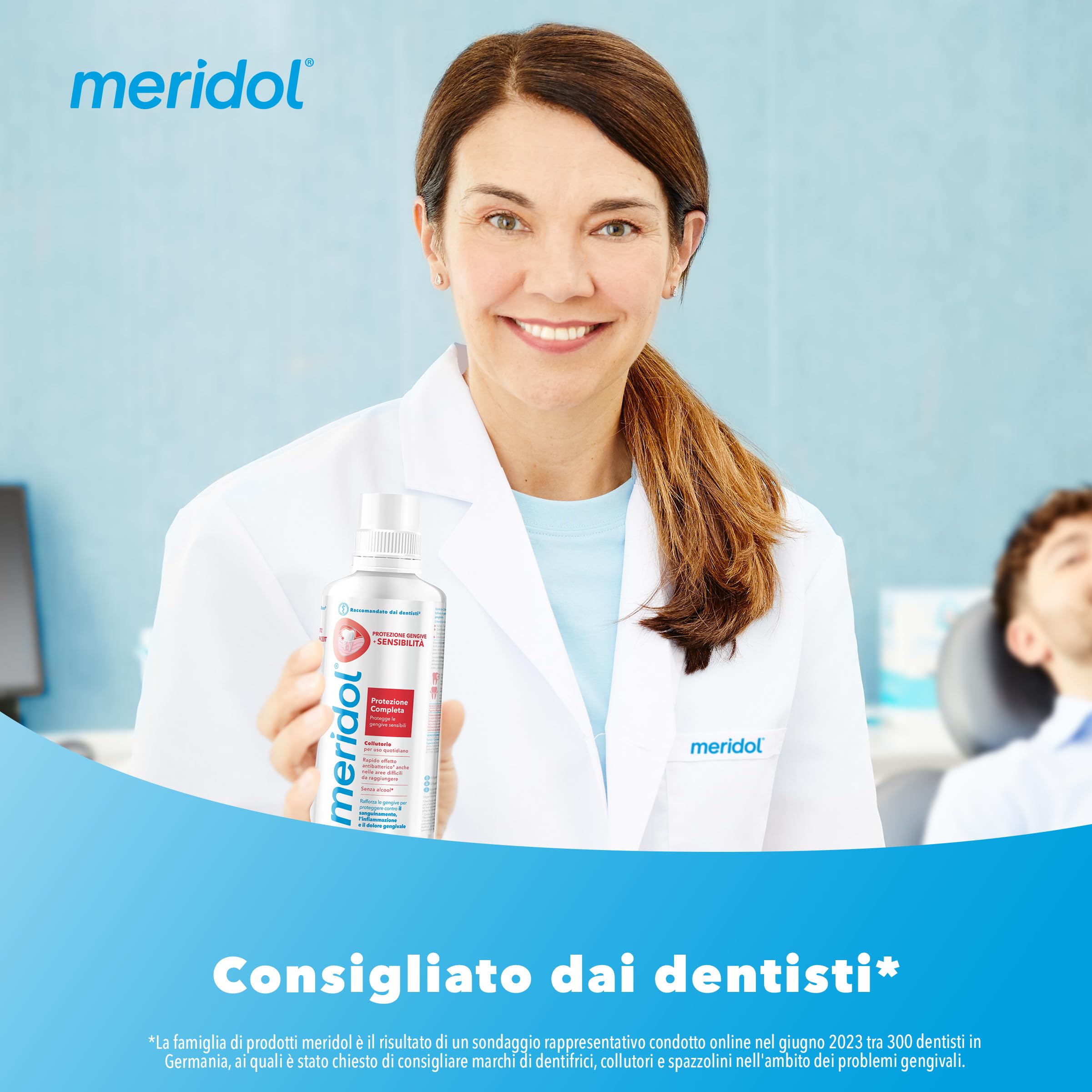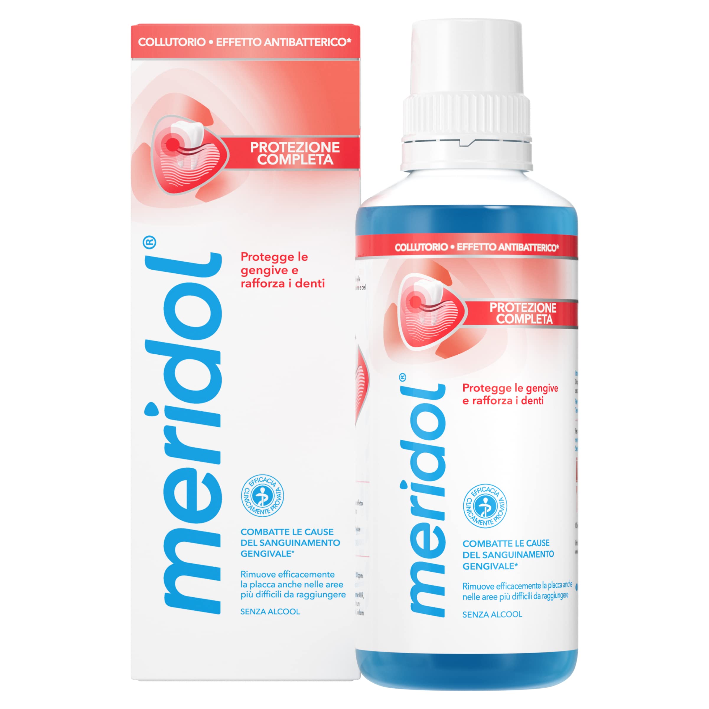 Meridol Antibakterielles Mundwasser, 400 ml, beruhigt gereiztes Zahnfleisch, schützt den Zahnschmelz, bekämpft Plaque-Bakterien, verhindert Zahnfleischbluten, 0% Alkohol