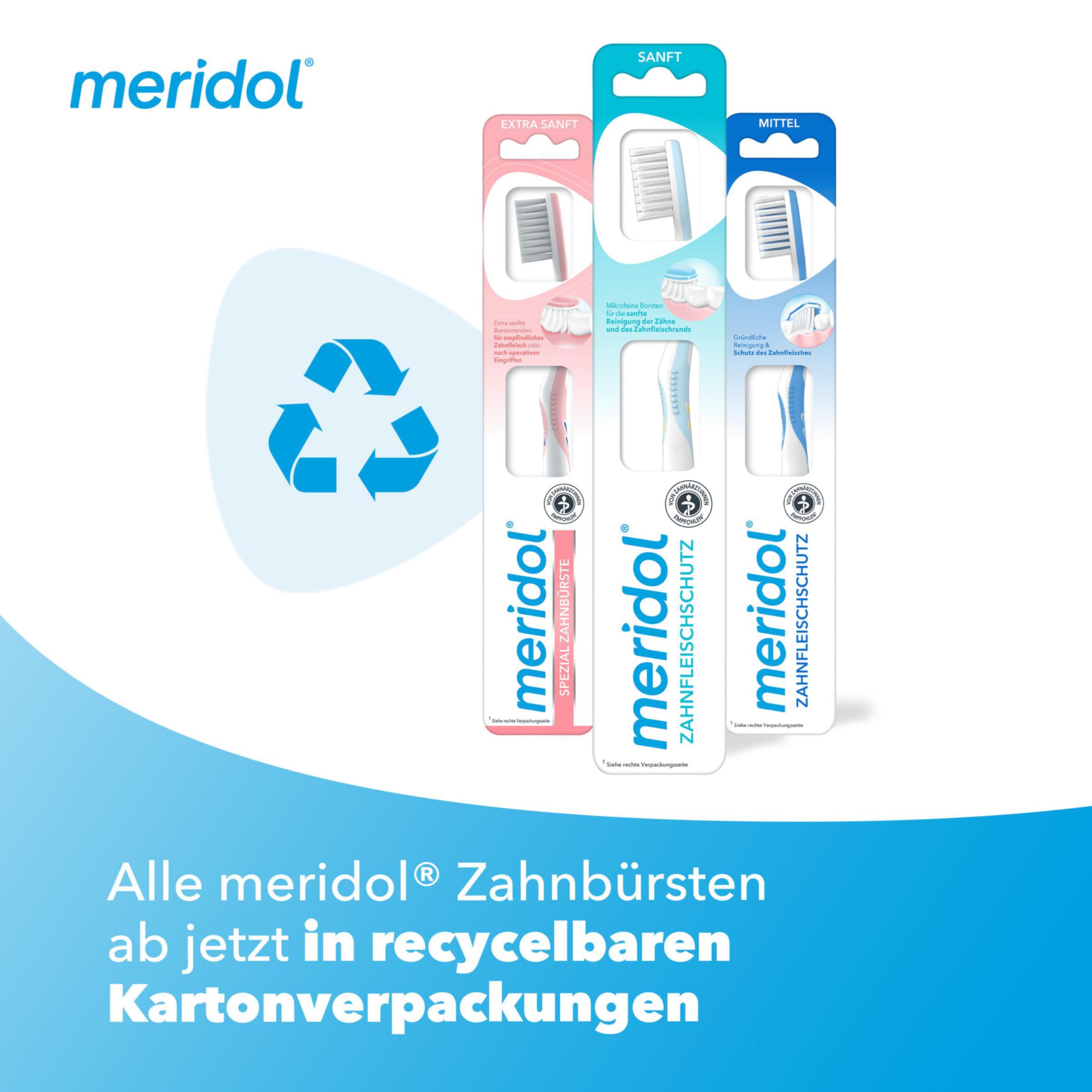 meridol Zahnbürste Zahnfleischschutz, extra sanft, 1 Stück - Handzahnbürste zur schonenden Reinigung von Zähnen am Zahnfleischsaum