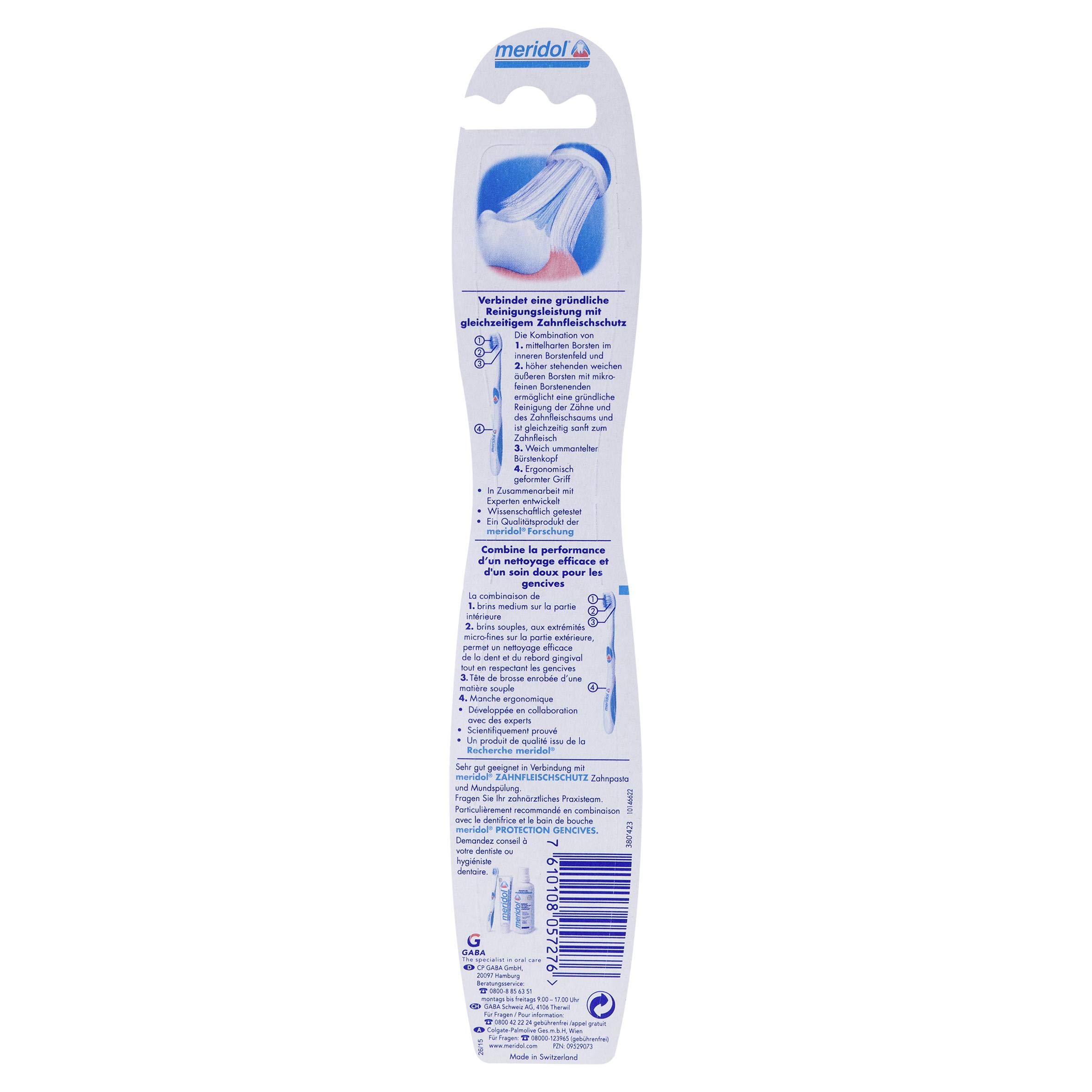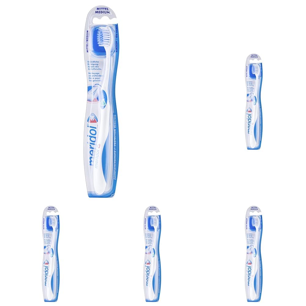 meridol Zahnbürste Zahnfleischschutz, mittel, 1 Stück - Handzahnbürste für eine schonende Reinigung von Zähnen am Zahnfleischsaum (Packung mit 5)