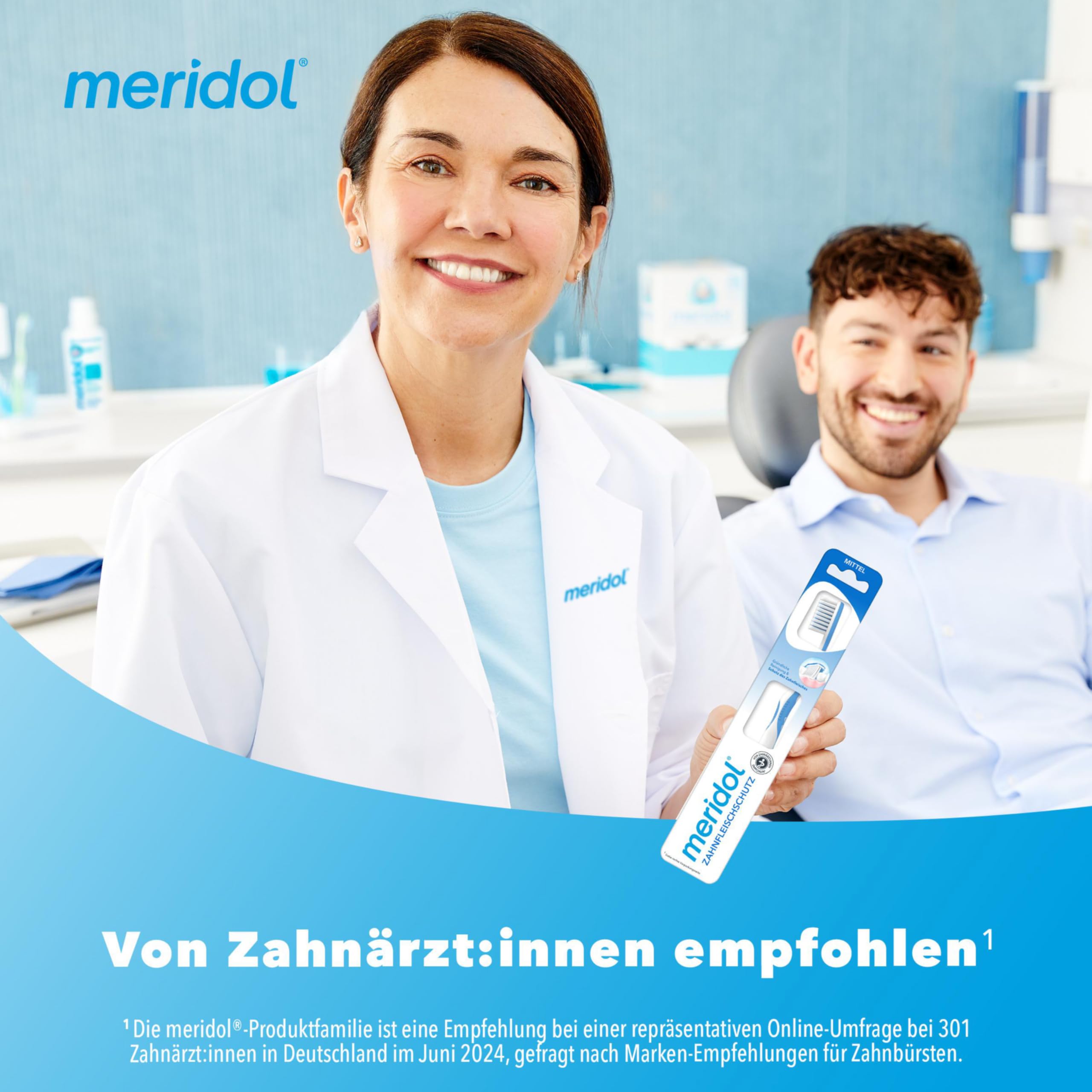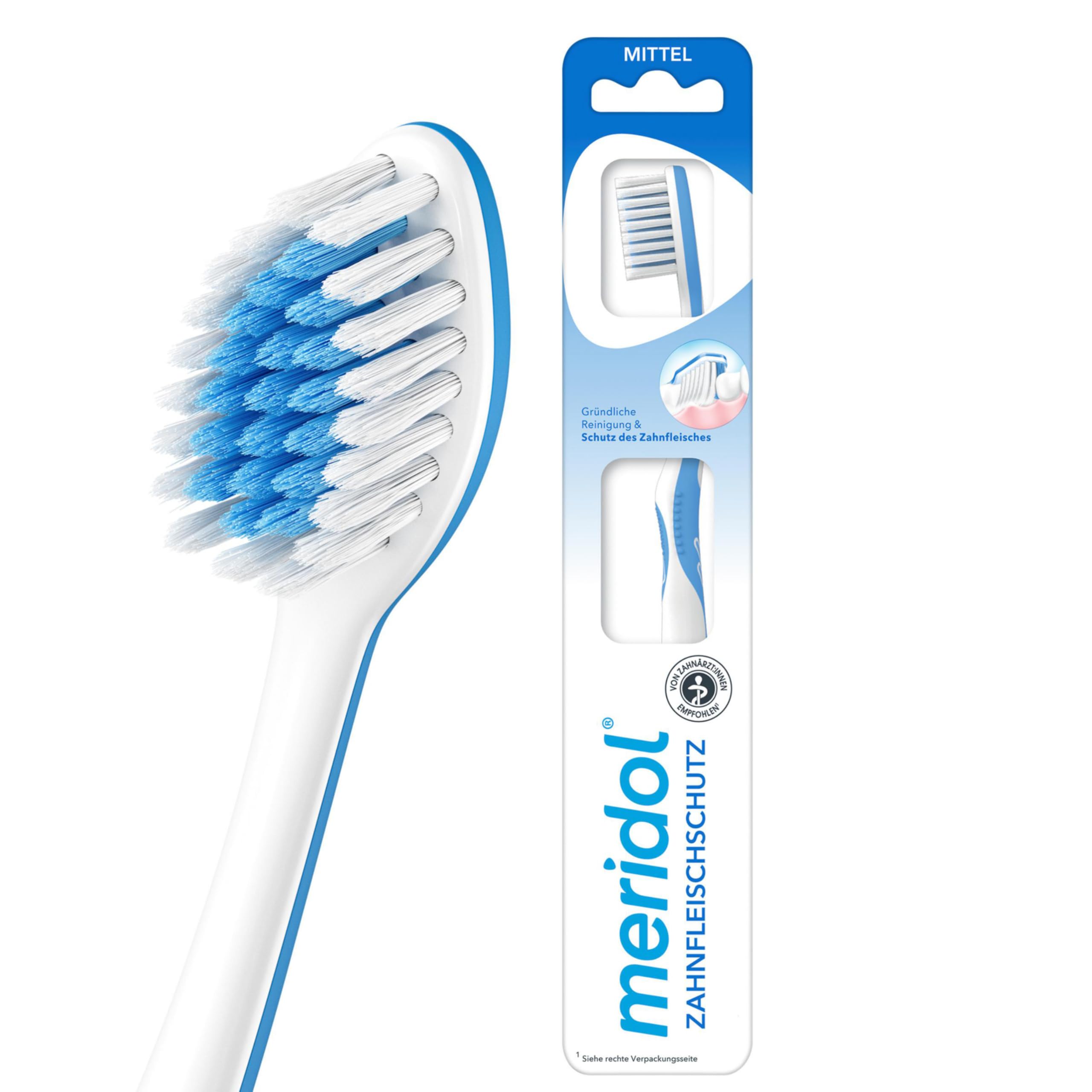 meridol Zahnbürste Zahnfleischschutz, mittel, 1 Stück - Handzahnbürste für eine schonende Reinigung von Zähnen am Zahnfleischsaum