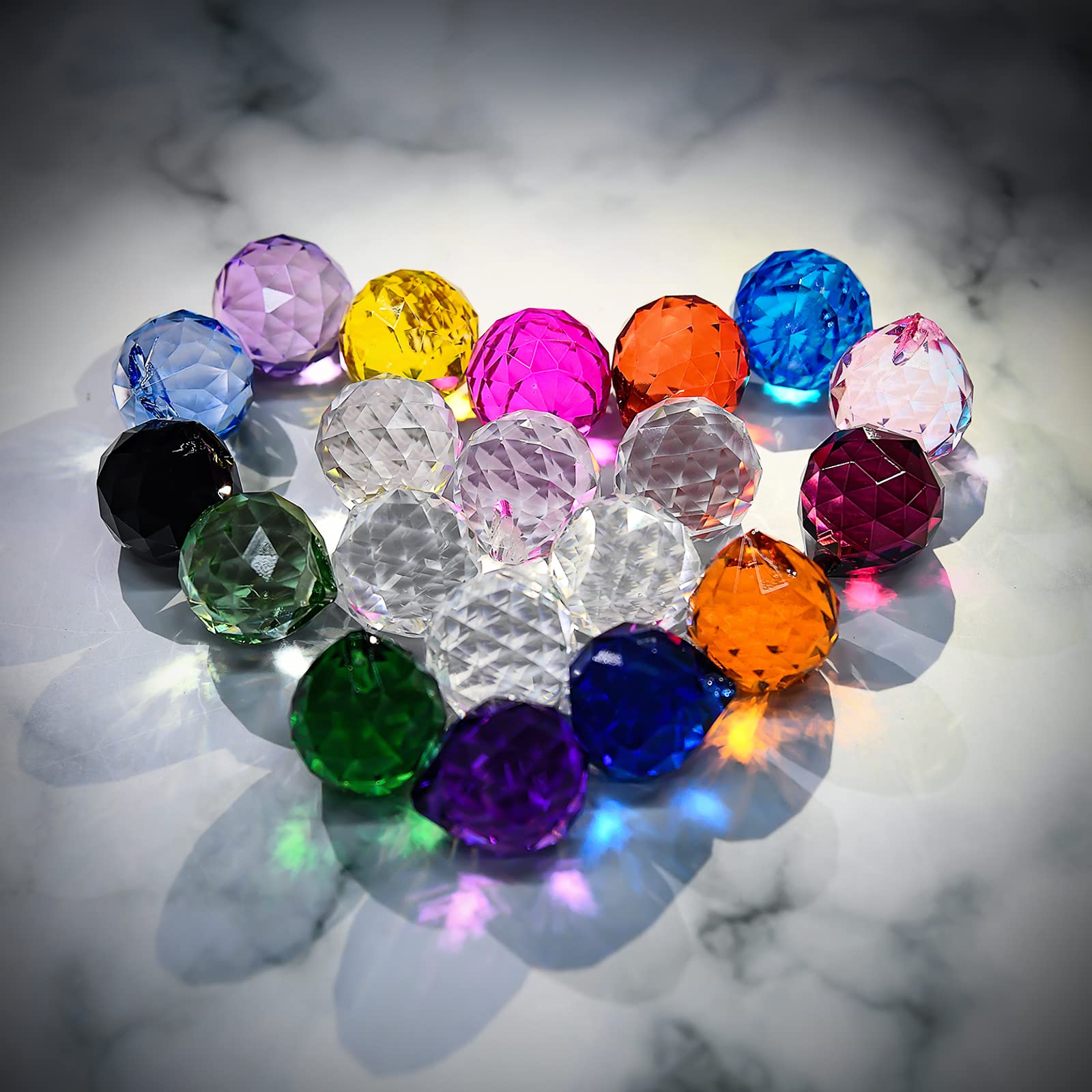 MerryNine gemischte Bunte Kristallkugel Prisma mit gebohrtem Loch Sonnenfänger, Regenbogen-Anhänger, hängende Kristalle Prismen für Fenster, für Feng Shui, als Geschenk (20mm)