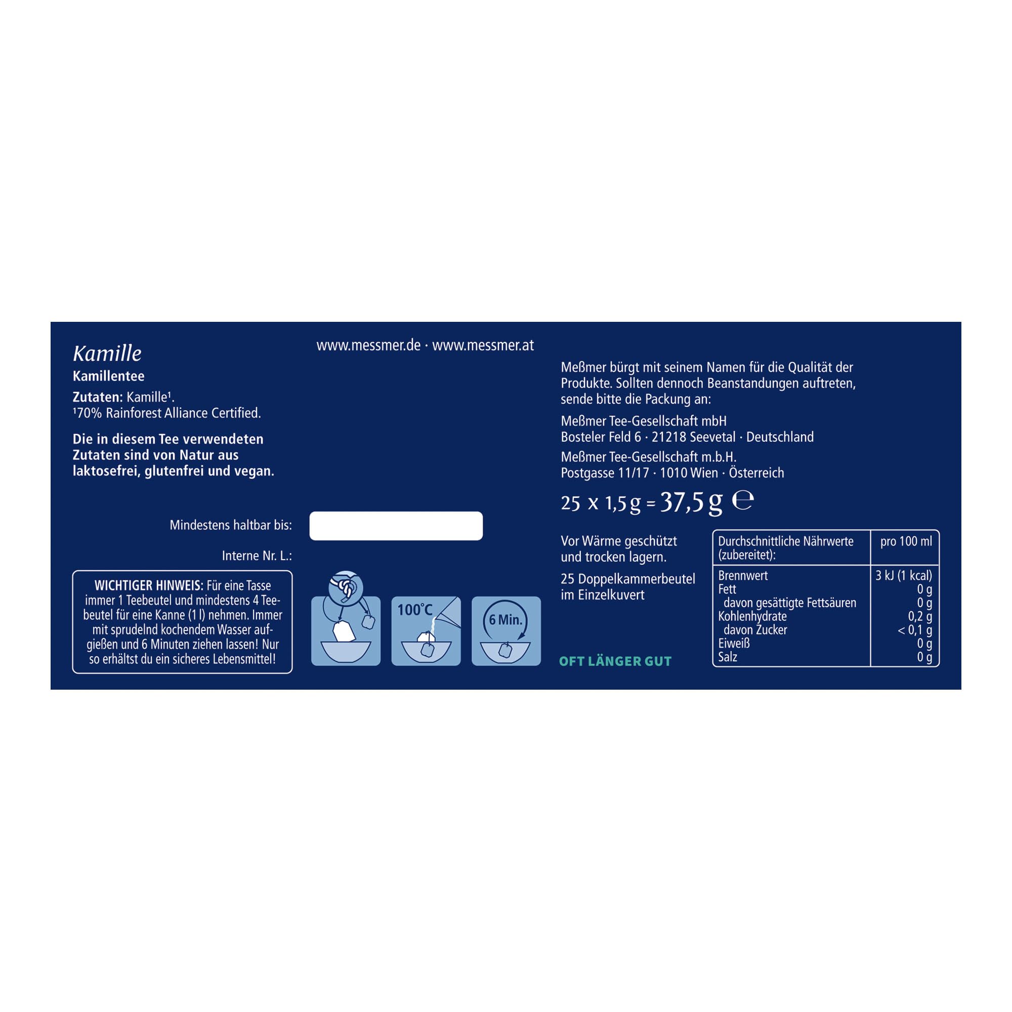 - MILDER GENUSS AUS KAMILLENBLÜTEN – Hochwertige Kamille aus ausgewählten Herkunftsregionen.