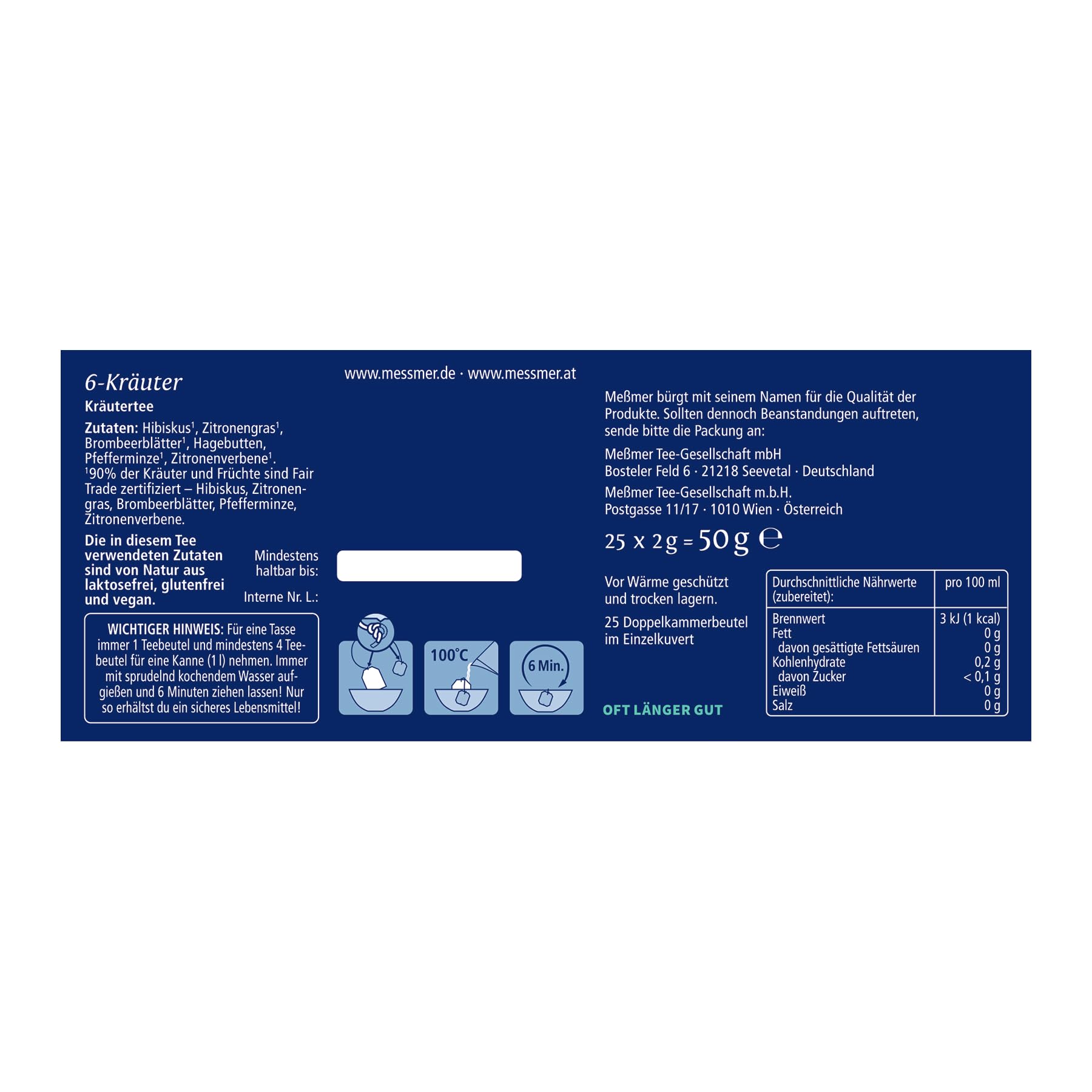 Messmer 6-Kräuter-Mischung | 25 Teebeutel | Vegan | Glutenfrei | Laktosefrei
