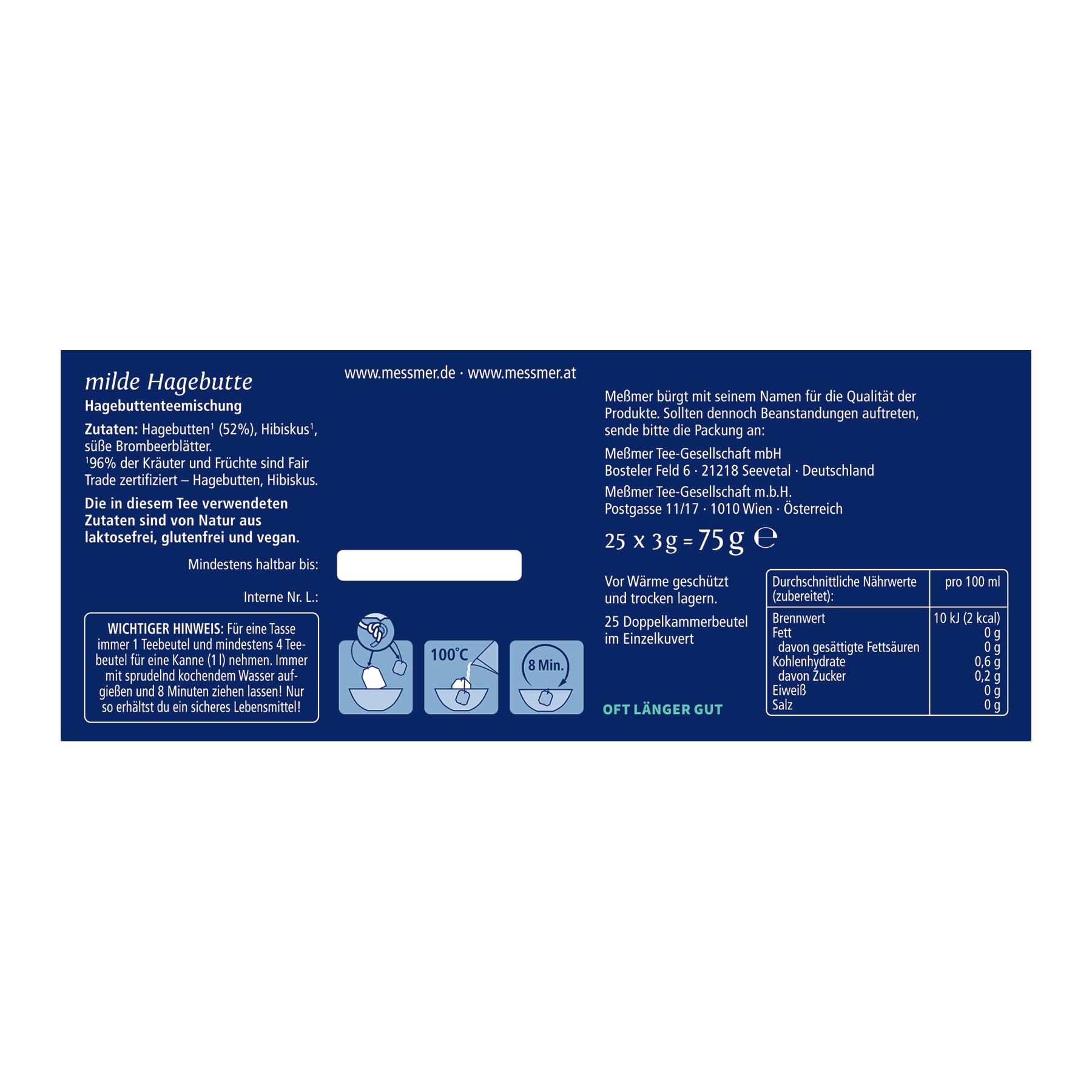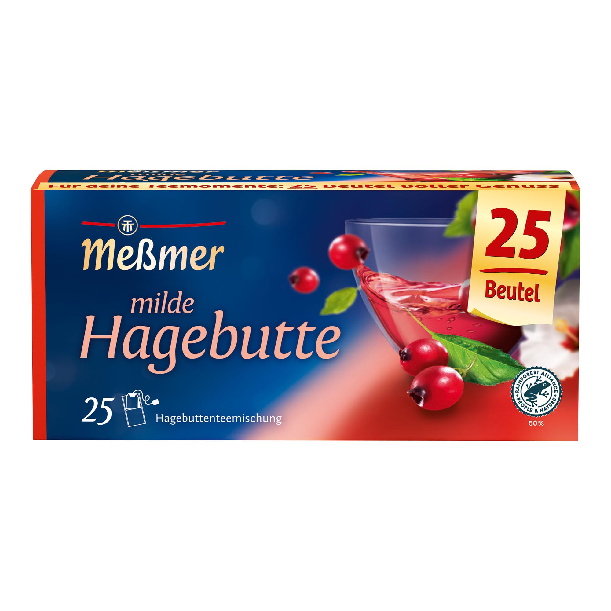 Messmer Milde Hagebutte | 25 Teebeutel | Vegan | Glutenfrei | Laktosefrei, 75g