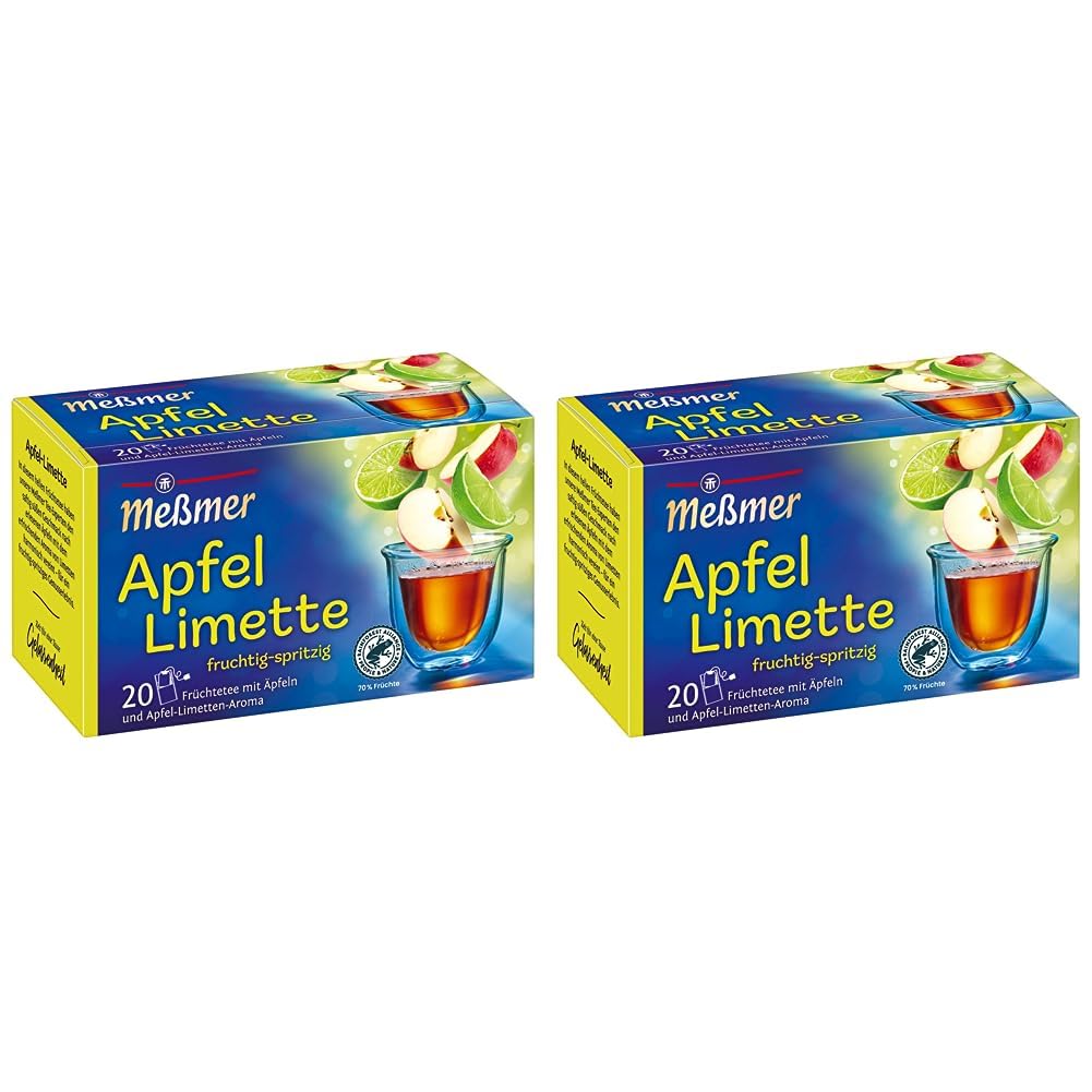 Messmer Apfel-Limette I 20 Teebeutel I Vegan I Glutenfrei I Laktosefrei (Packung mit 2)
