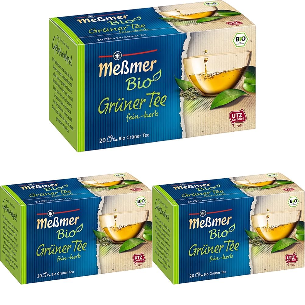 Messmer Bio Grüner Tee | fein-herb | 20 Teebeutel | Vegan | Glutenfrei | Laktosefrei (Packung mit 3)