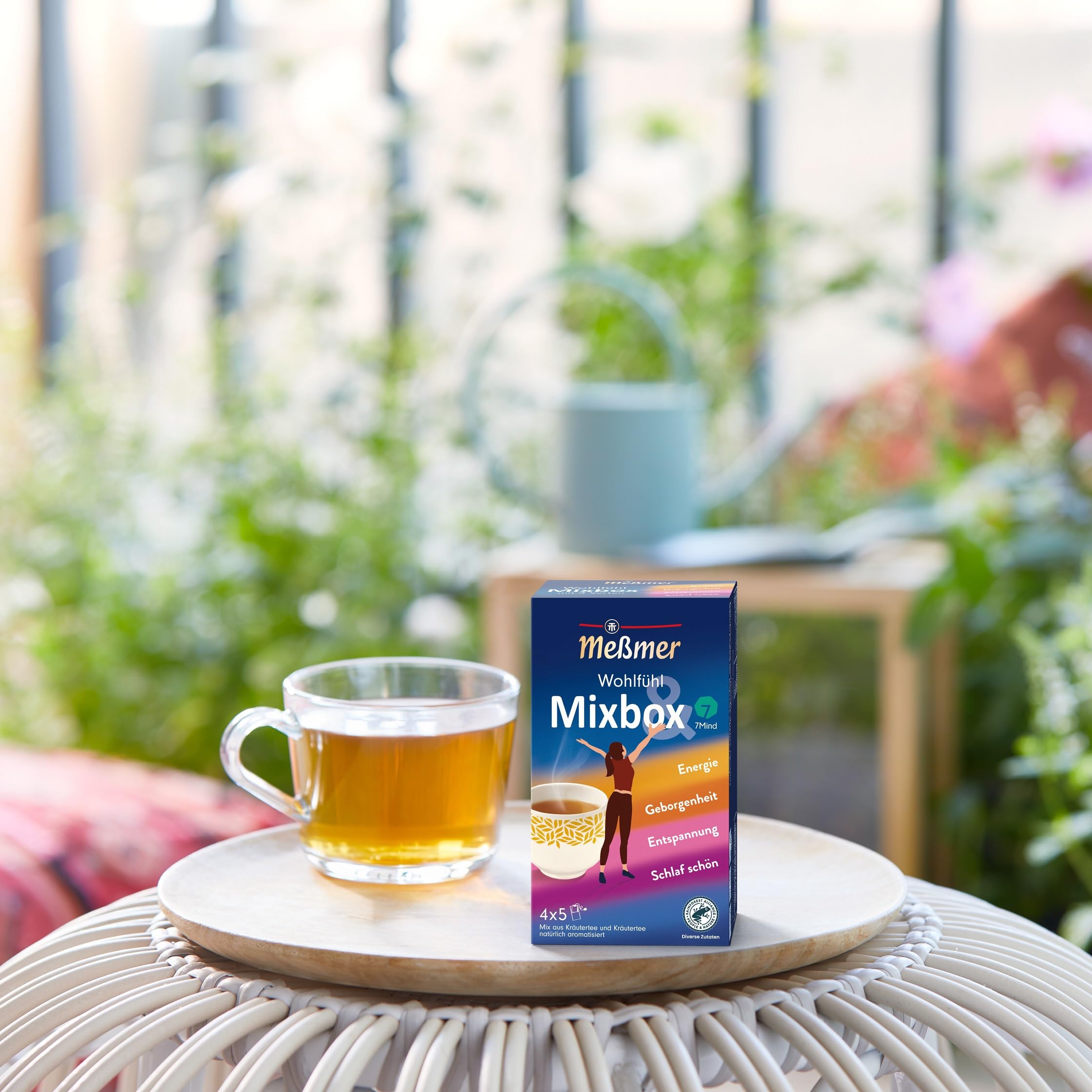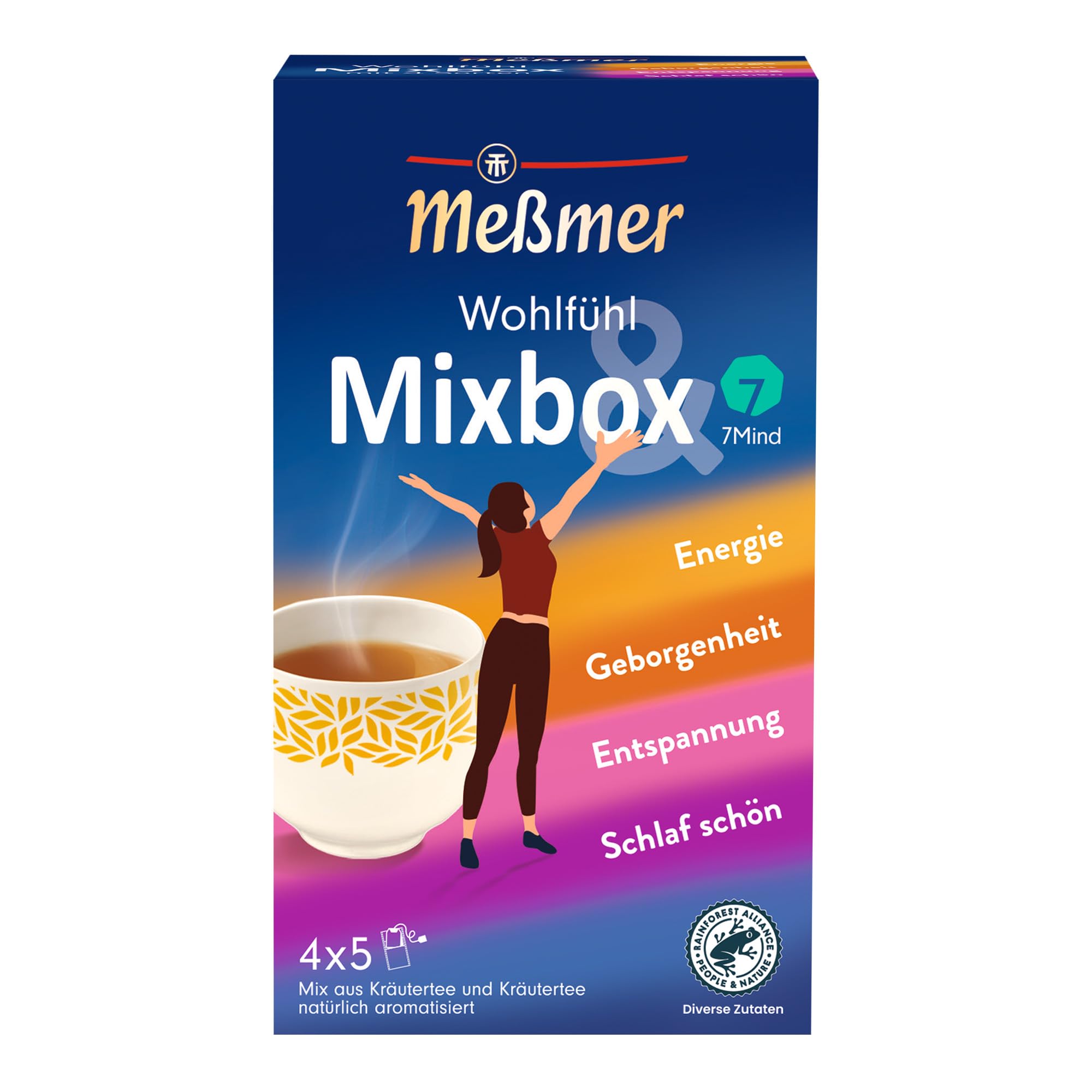 Messmer Wohlfühltee Mixbox | 20 Teebeutel in 4 Sorten: Energie, Geborgenheit, Entspannung, Schlaf schön | Kräutertees für jede Tageszeit