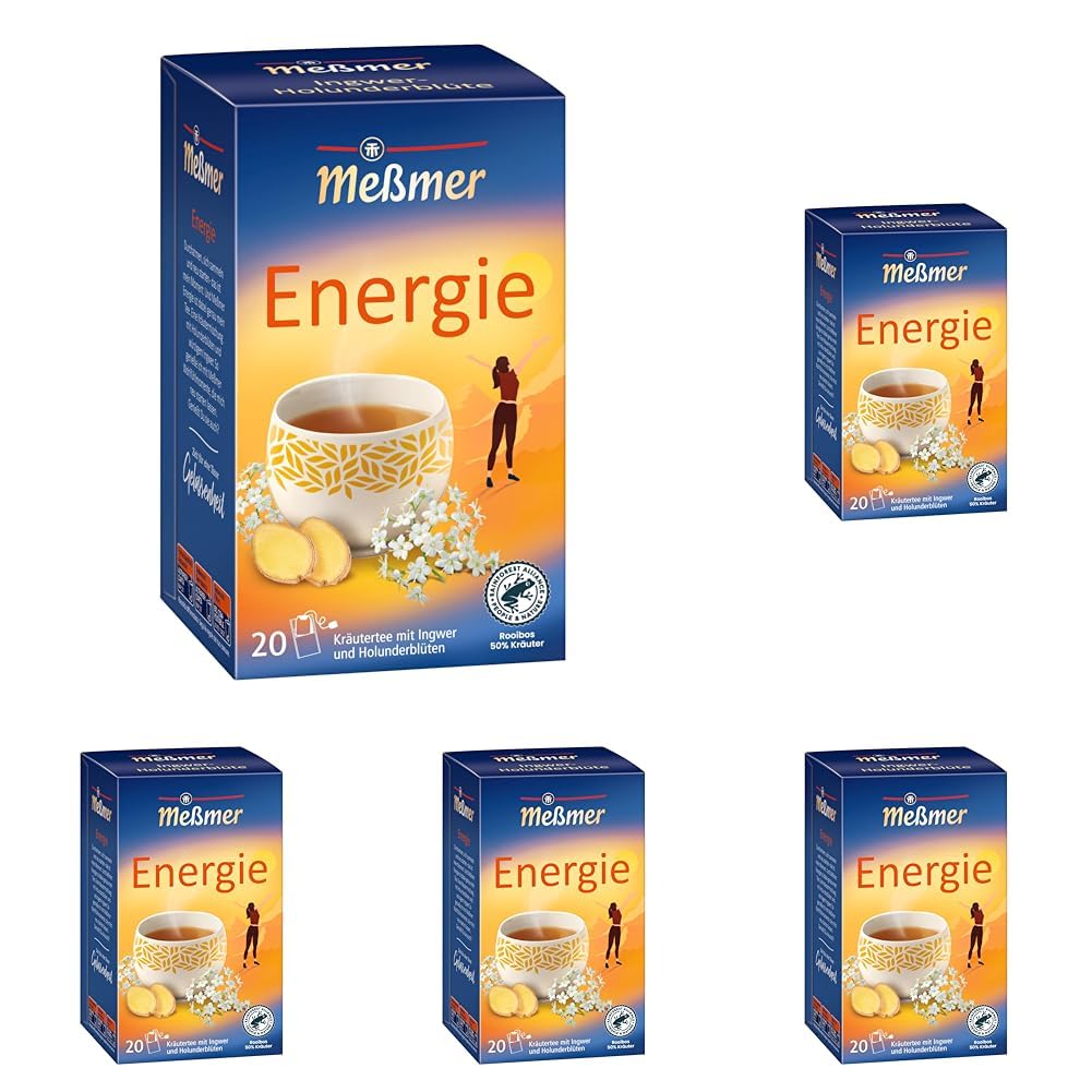 Messmer ENERGIE I Ingwer-Holunderblüte I 20 Teebeutel I Vegan I Glutenfrei I Laktosefrei (Packung mit 5)