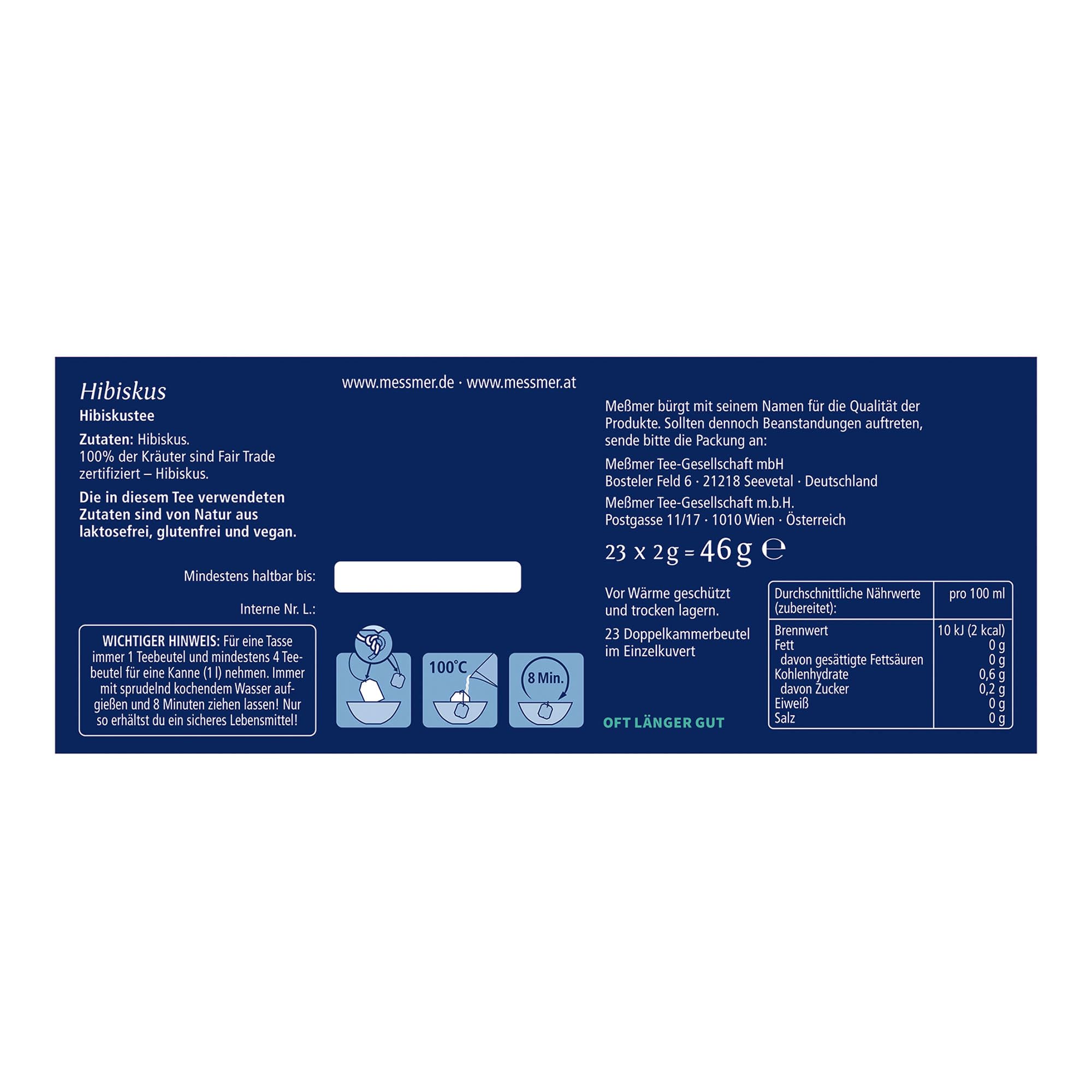 Messmer Hibiskus | 23 Teebeutel | Vegan | Glutenfrei | Laktosefrei