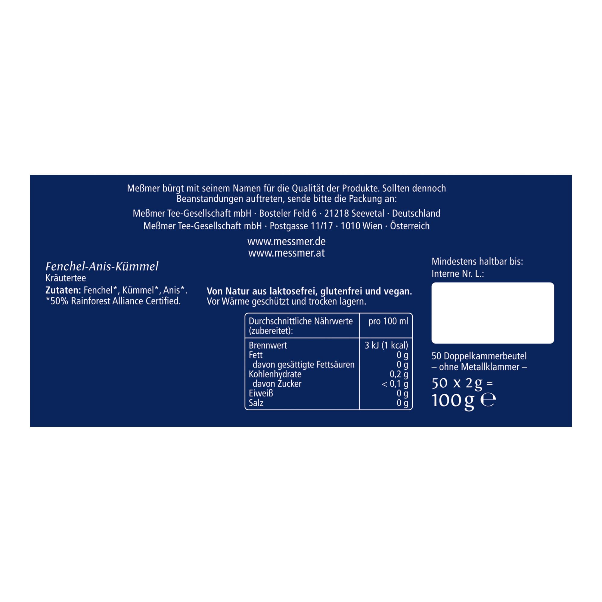 Messmer Fenchel-Anis-Kümmel | Kräutertee | 50 Teebeutel | harmonisch, würzig-süss