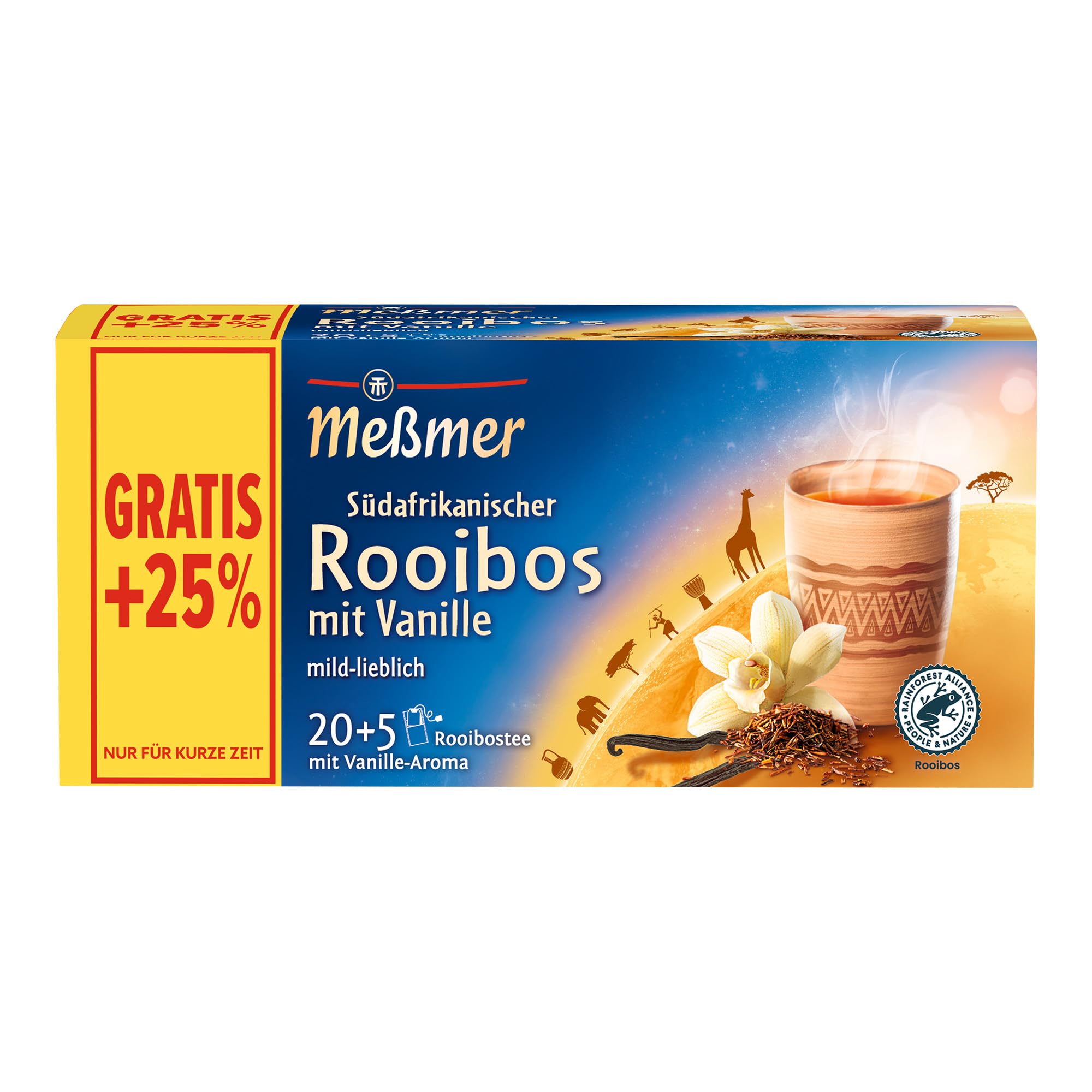 Messmer Ländertee Südafrikanischer Rooibos mit Vanille | Vorteilspackung 20+5 Teebeutel | mild-lieblich